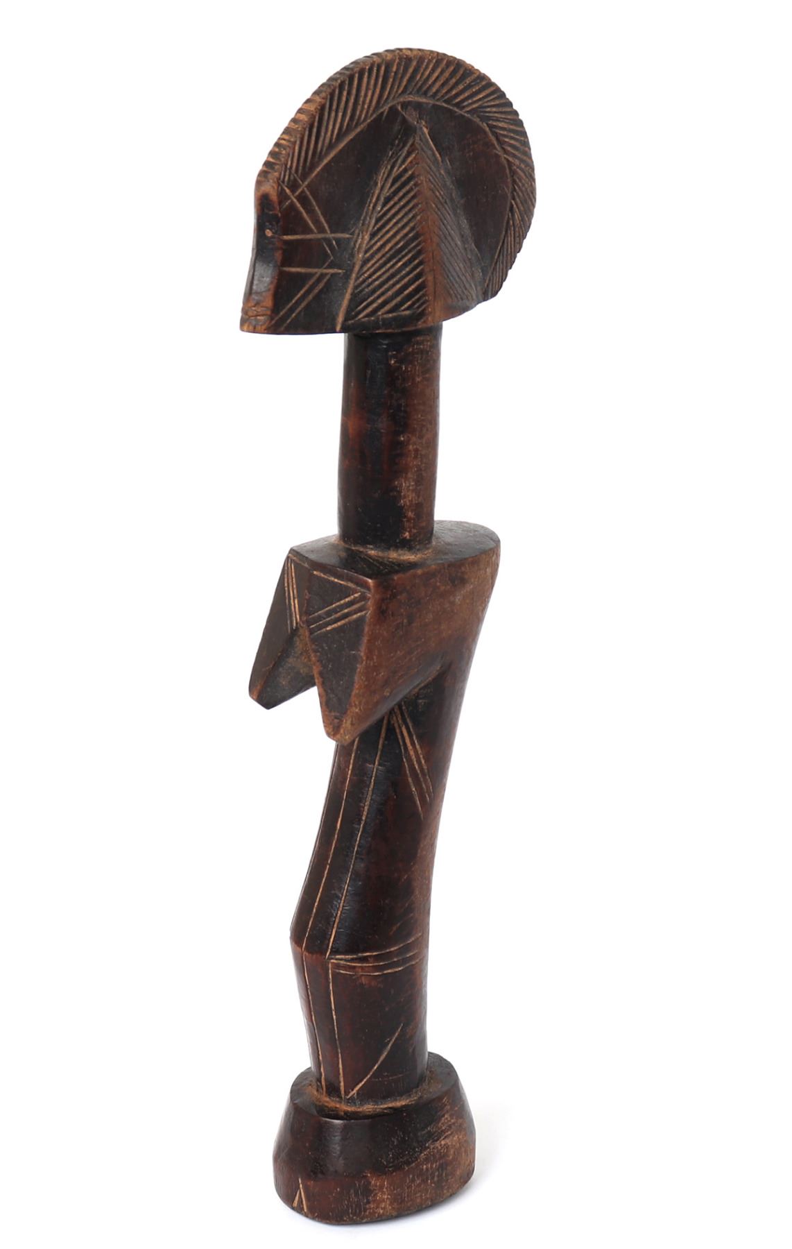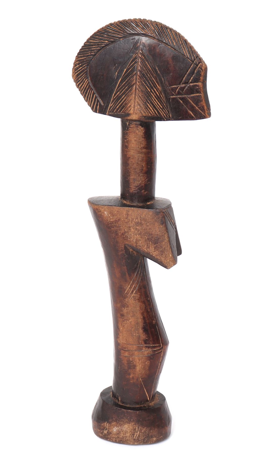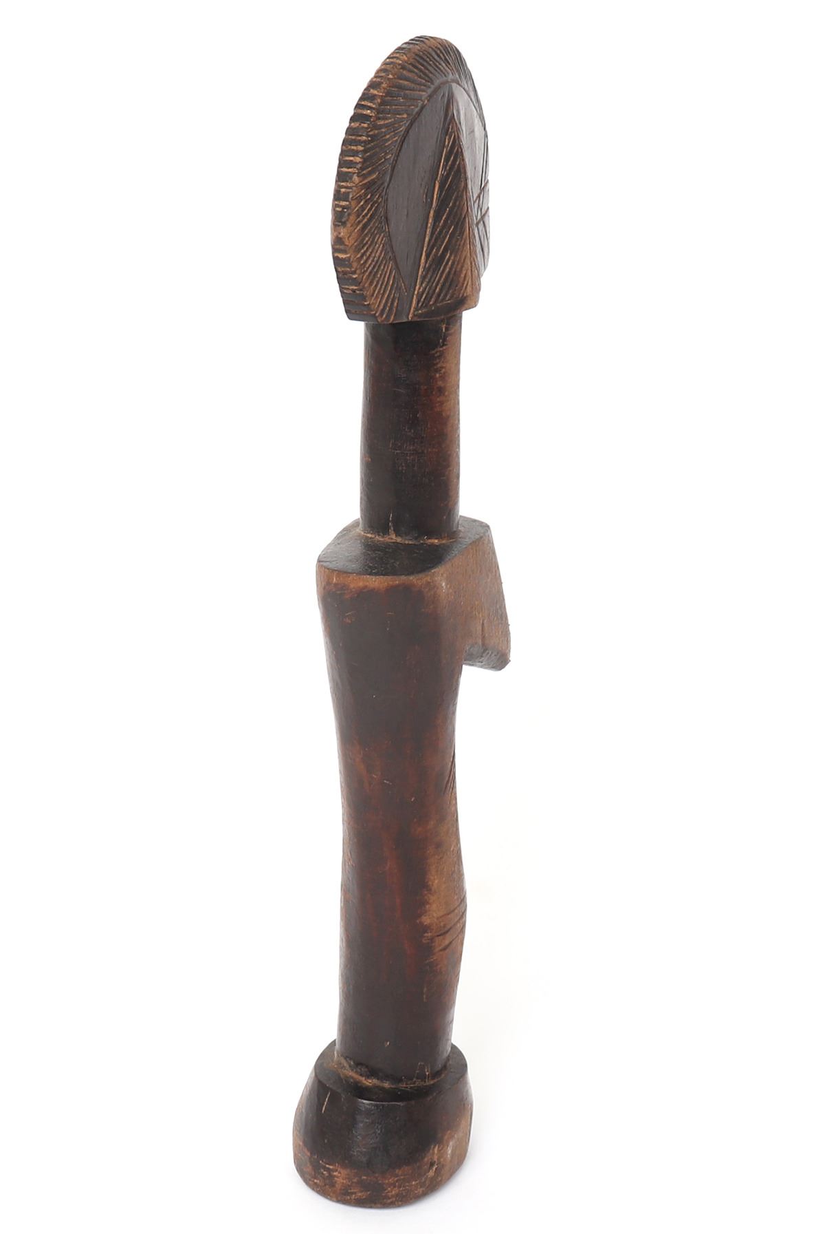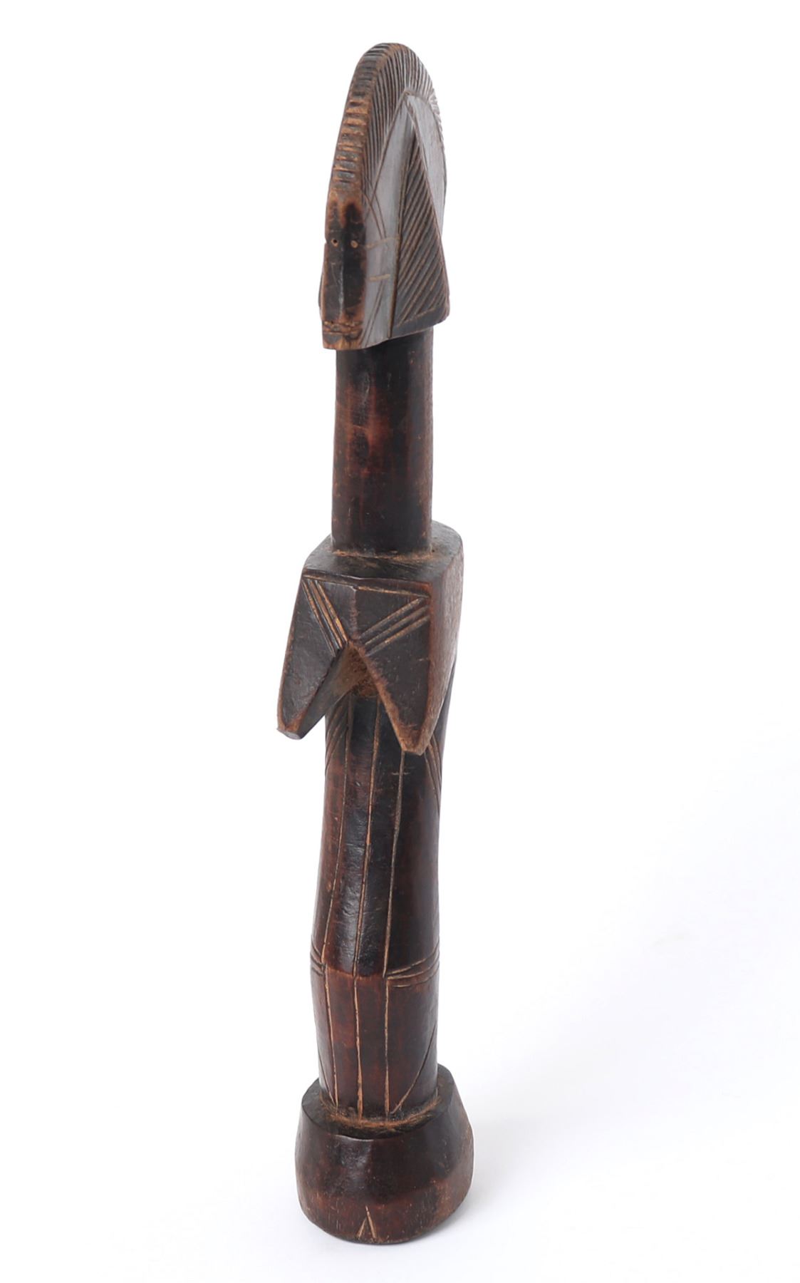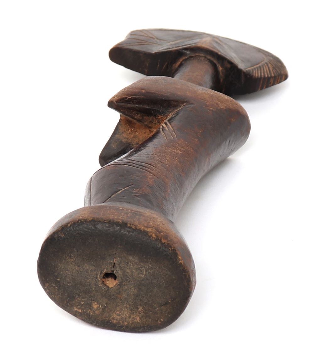 Burkina Faso, Mossi peoples fertility dolls collected in 1982 South Africa and reviewed by a member of the Ethnic Arts Council & Charles D. Miller III as having correct patina and wear from handling and use. These dolls were worn on young girls backs with wrappings which create a patina such as this example. Size 14 1/2" H x 4 1/2" W. Provenance: Family collection of an esteemed diplomat and ambassador amassed during travel and work circa 1960-1990s in the medical field providing charitable advanced medical care throughout the African continent and internationally.