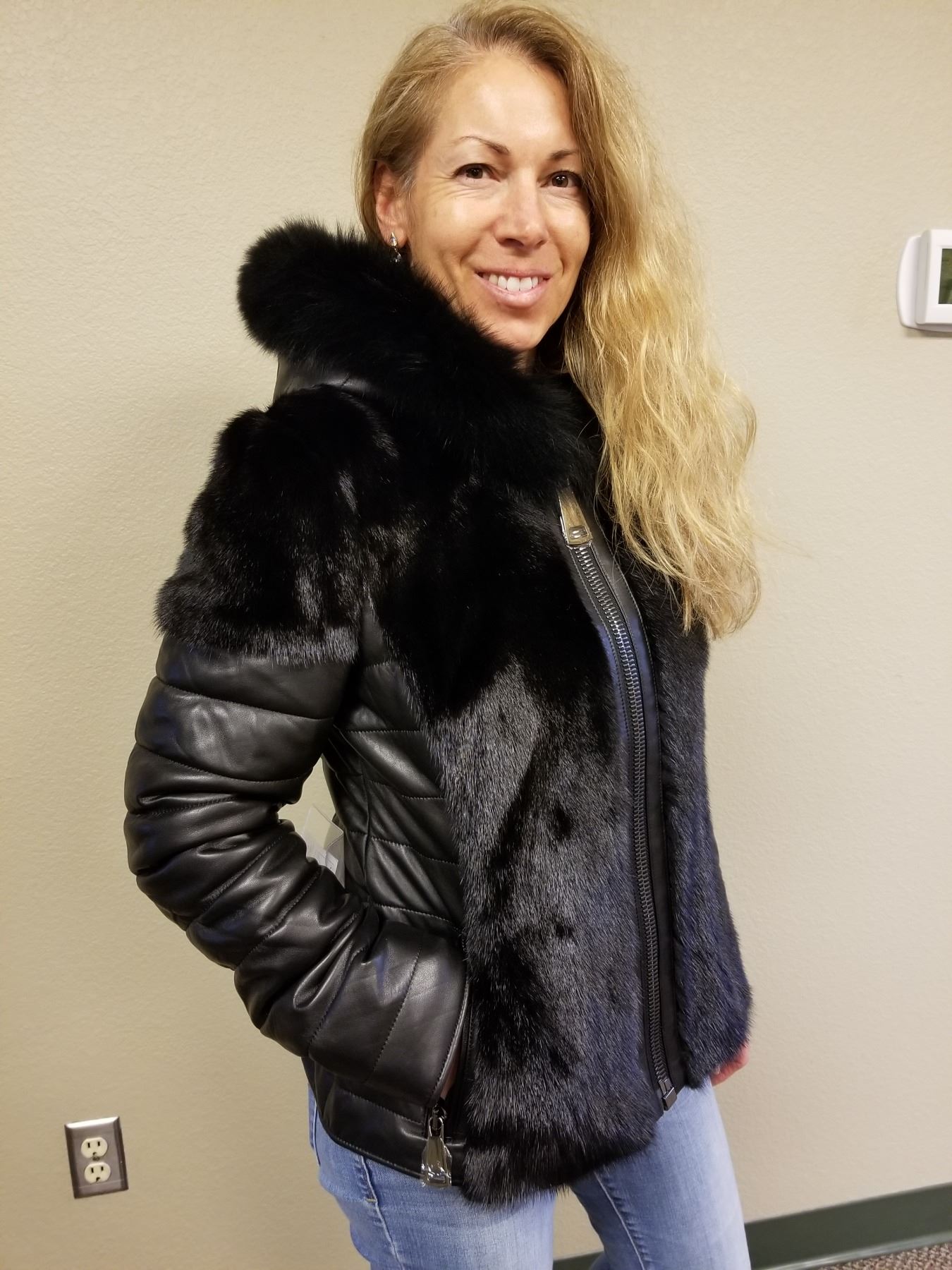 Fur Coat: Alaska Fur Gallery of Anchorage has donated this moto leather style jacket that is a contemporary spin, with an elegant touch, on a very classic design. This women’s black leather jacket with mink and fox fur trim is a must have for the cooler season. It is crafted from the finest quality leather to keep you looking fabulous, as well as wonderfully warm. With its beautifully contoured fit, this functional and stylish all-around jacket, which looks amazing dressed up or down, is a great addition to any wardrobe. Size Exchangeable. For over 70 years, internationally renowned Alaska Fur Gallery of Anchorage (907-274-3877) has met the fashion needs of discerning women. We thank them for their donation.