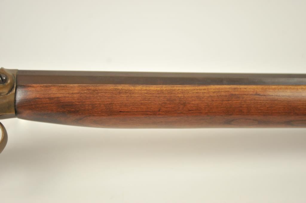 Mowrey Olney of Texas Bicenntenial Model reproduction brass single shot percussion rifle, .50 caliber, #1517 OF 5,000. The rifle is in fine overall condition with 32” octagon barrel with a brass knife blade front sight, brass tipped wooden ramrod, brass frame and trigger guard. The smooth wood stock is in very good condition with a brass schutzen style butt plate. Est.: Est.: $150-$300.