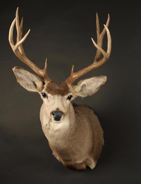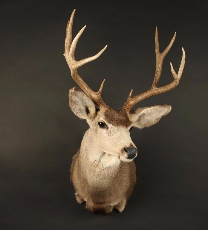 Ten point buck with a 19" spread. Measures 29" from back to nose. Good condition.