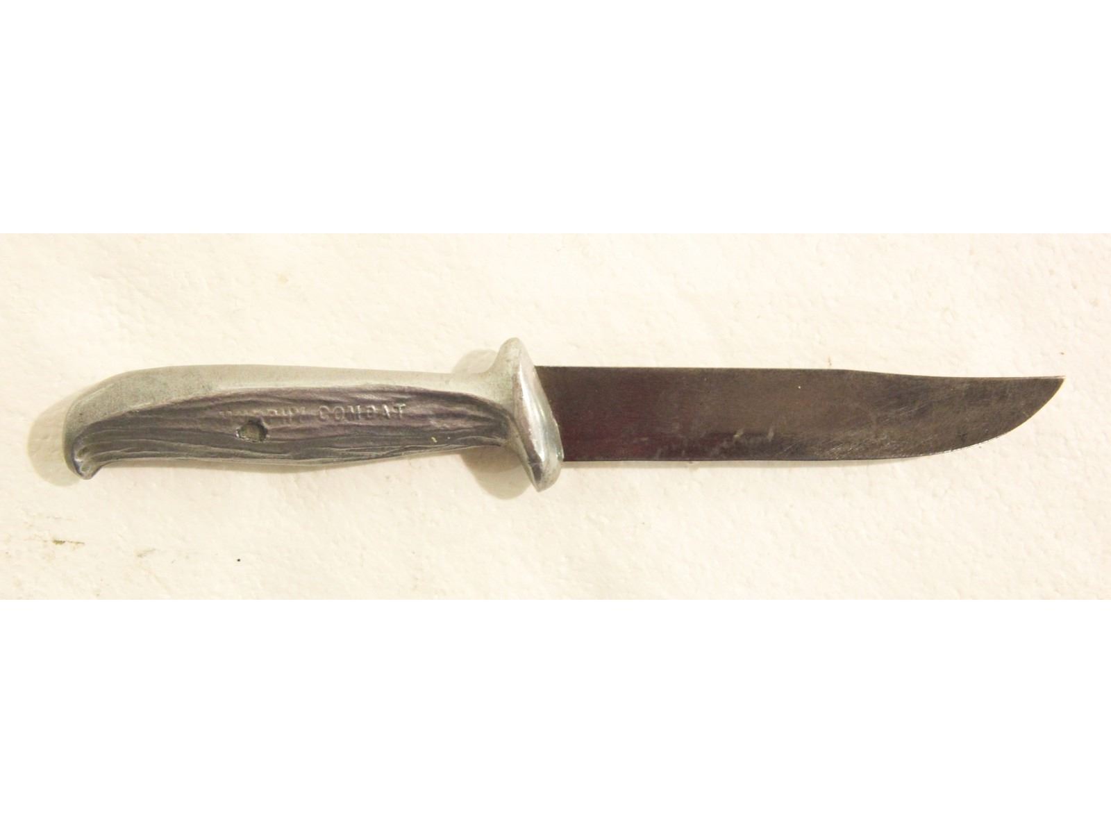 Murphy combat knife with leather sheath. Blade shows heavy use. Has Murphy Combat and 18A markings. Sheath is worn. Overall fair condition. See photos.
