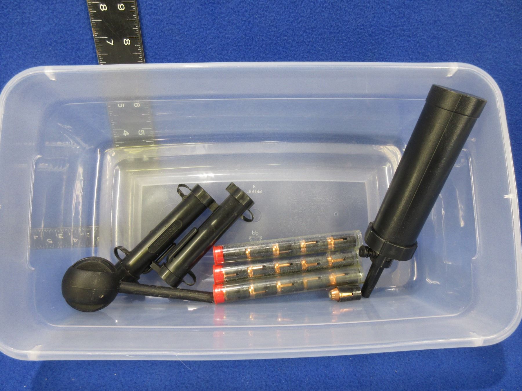 Muzzleloading Powder Measure, Ball Starter, 2 Speedloaders and 3 Tubes of 5 with 50 Cal. Sabot & Bullets