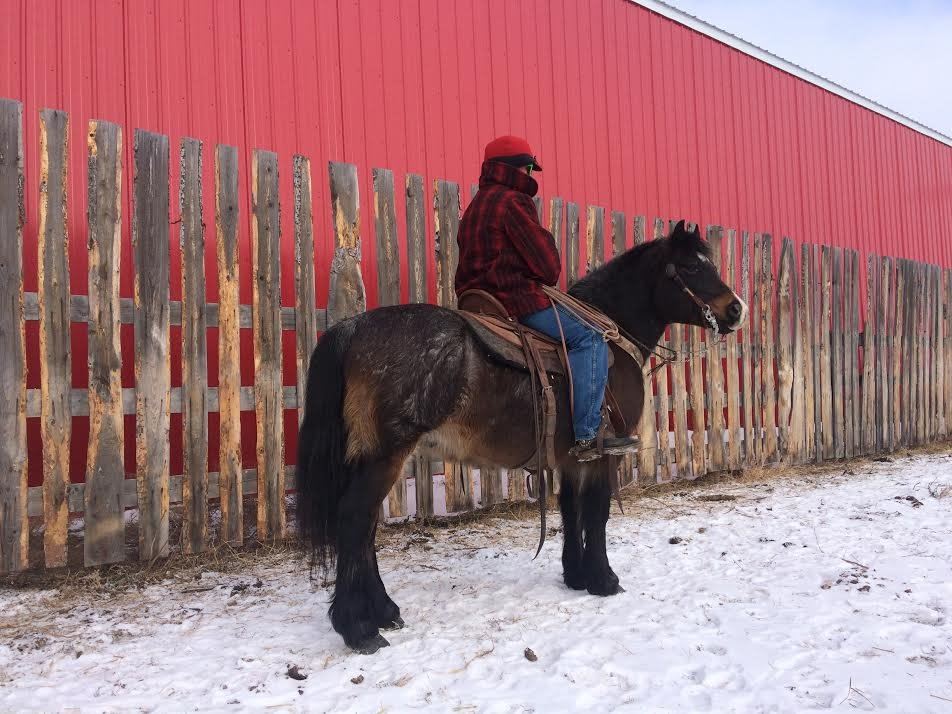 Simon is a fantastic, all around, papered Welsh-Cob pony gelding. He is 14 years old and stands 13 hands. This little gelding has done it all, and is broke to ride, and drive single and double. He has been shown in cart classes, been in parades, packed flags, been in the mountains, chased cattle, branded calves, trail rode with inexperienced riders, done gymkhanas, and used as a 4h project. You could not ask for a better mannered, safer gelding for an inexperienced rider, while still being enough horse for someone to get out and use. Really walks out, blemish free, fancy bay roan color… this horse is one in a million. Rides very handy and soft in the bridle, gets off of your leg, traffic safe. Has coggins. Any questions, call MJ at 780-210-2503, and check out our video on youtube at https://youtu.be/NC6UjFsKfbs