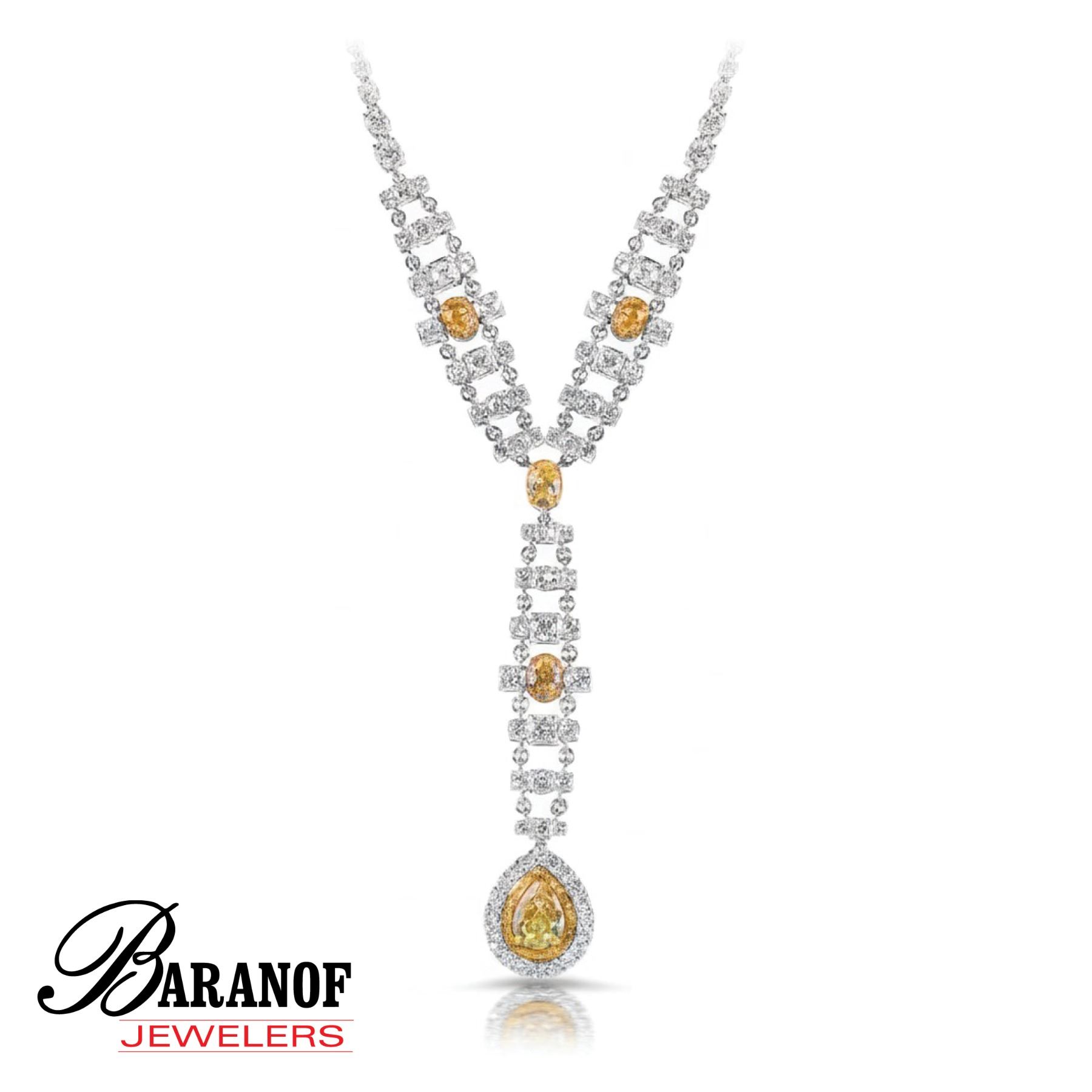 Natural canary yellow diamond and white diamond necklace set in 18 karat white gold and has a total of carat weight of 14.40 carat.