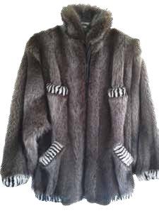 This exquisite fur was crafted in Canada and sold by Paparazzi Fur in Big Sky, Montana. It is made of natural raccoon fur with white and black dyed, sheared beaver trim. The jacket is a size large, has been worn once and is not exchangeable. Snuggle into a little bit of luxury!