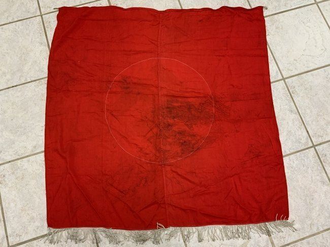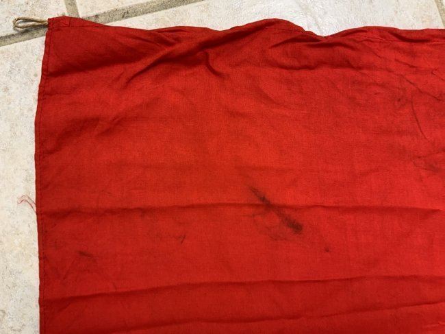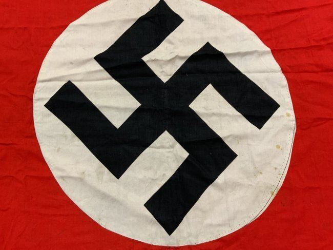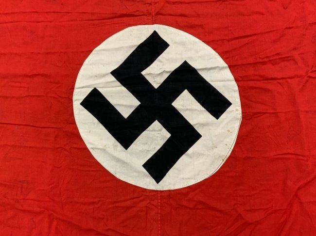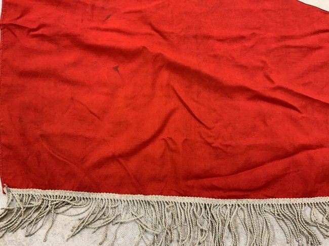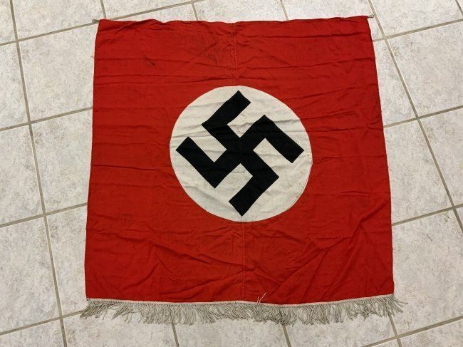 NAZI GERMANY RED NSDAP PODIUM BANNER WITH FRINGE . VERY GOOD CONDITION SINGLE SIDED.37 X 37 IN SIZE.