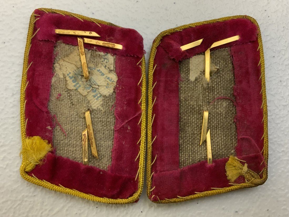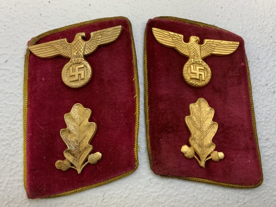 NAZI GERMANY REICH LEVEL NSDAP PARTY LEADER COLLAR TABS . RARE HIGH LEVEL YELLOW CORD PIPED TABS. GOOD USED CONDITION . REMNANTS OF PAPER RZM TAG.