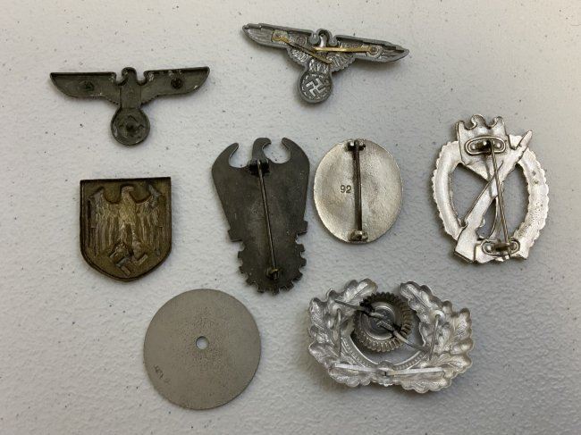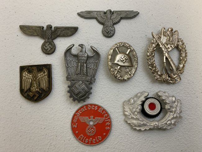 NAZI GERMANY THIRD REICH INSIGNIA AND AWARDS LOT . ORIGINAL AND POST WAR EXAMPLES. GREAT REENACTORS LOT