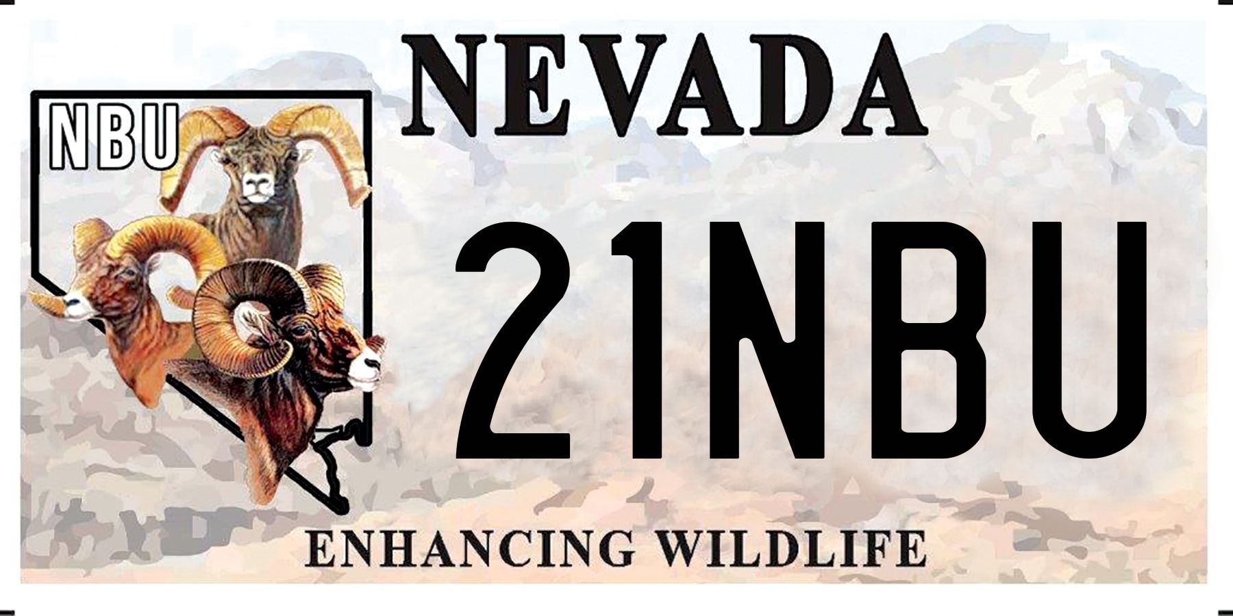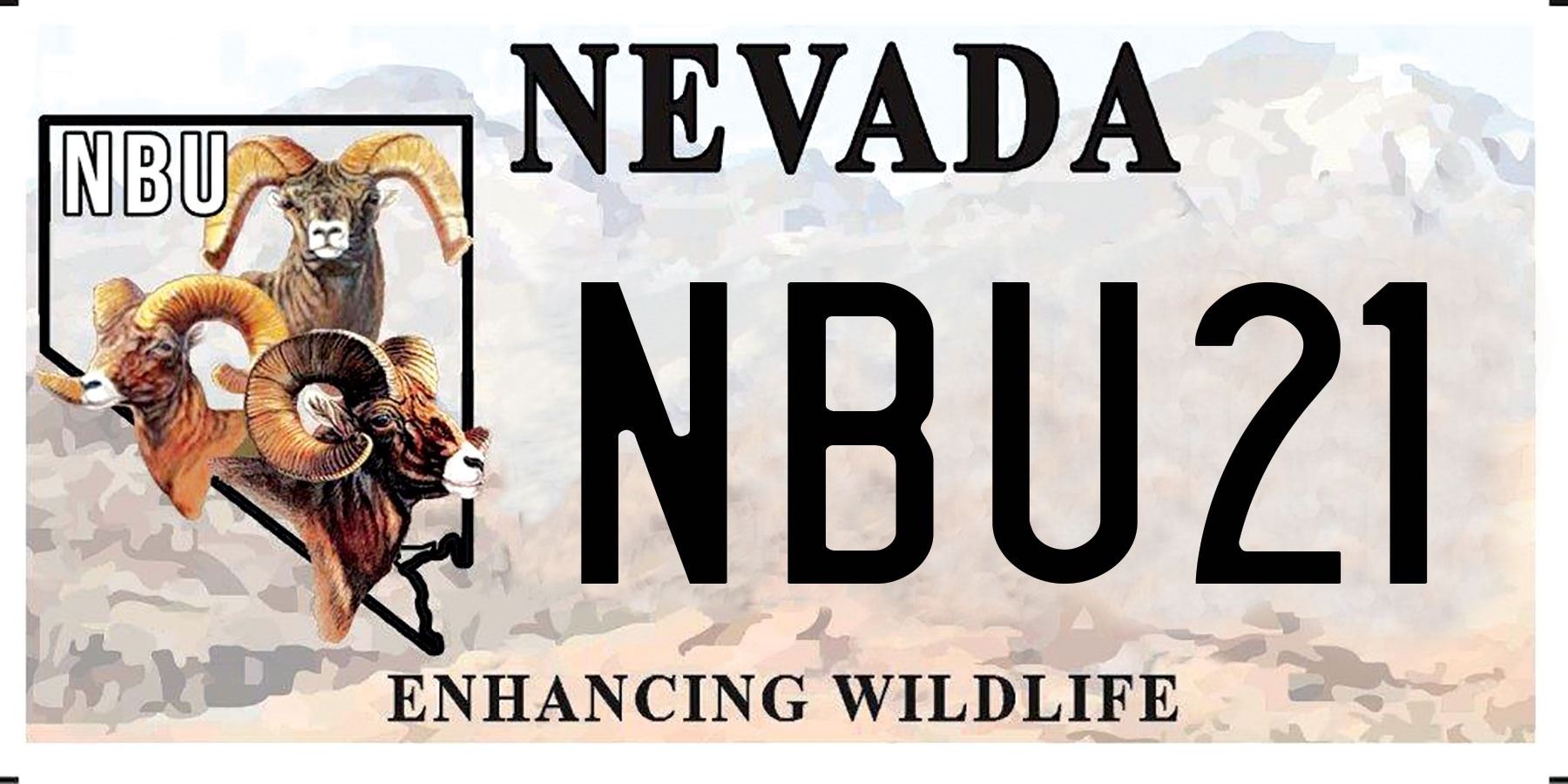 Show your support for NBU and purchase NBU License Plate "21NBU". These new “Enhancing Wildlife” plates will help NBU continue its mission to enhance Nevada's Wildlife. You can transfer your current registration to the NBU wildlife plate or put it on a new vehicle.