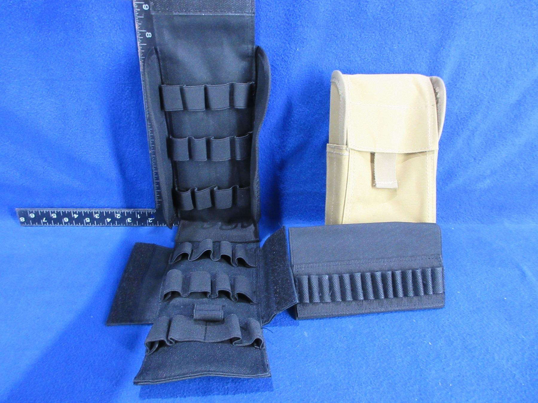 NEW - 2 - 12 Ga Shotshell Pouches (Hold 25 Shotshells) & Buttstock Cartridge Carrier