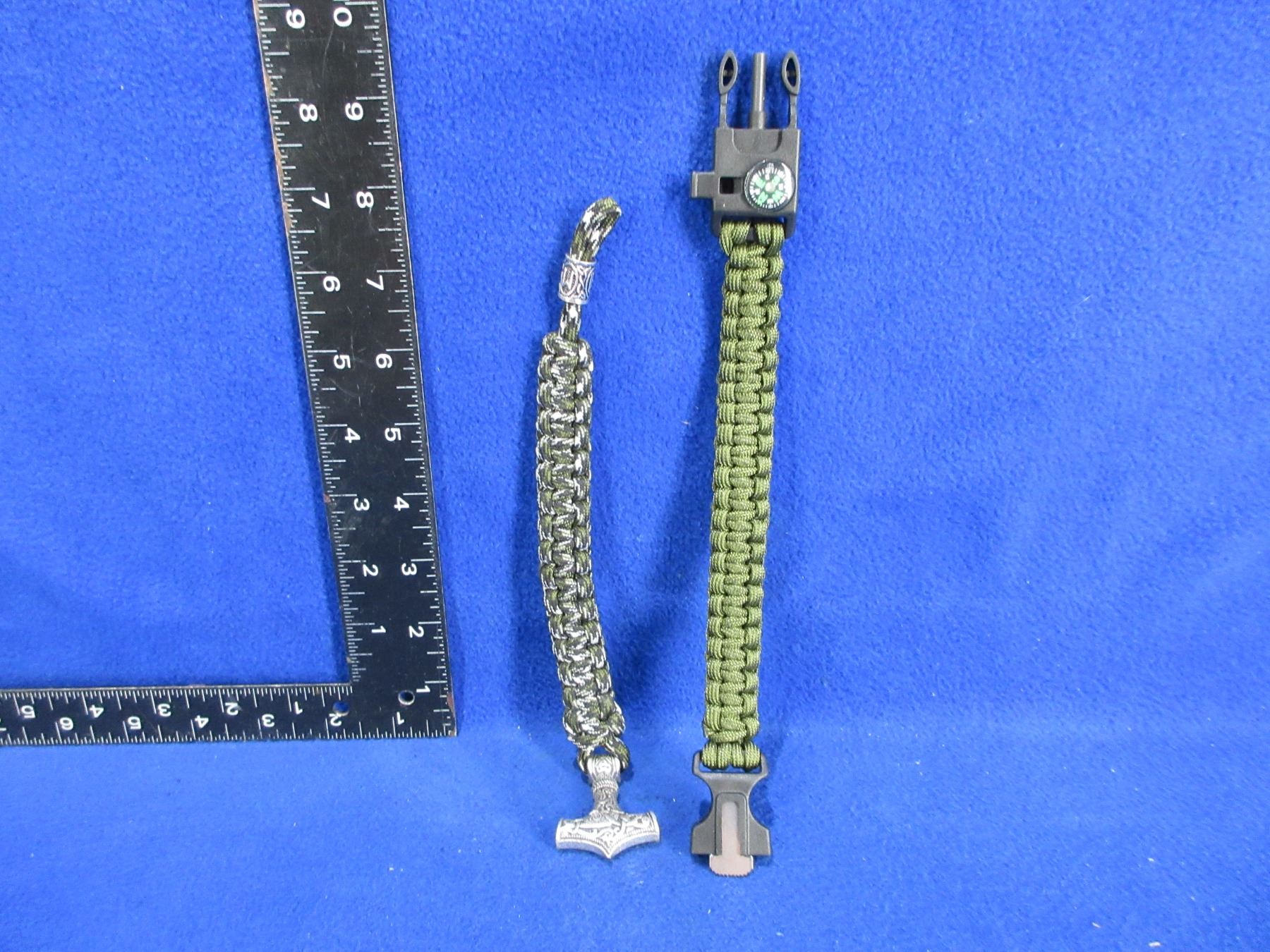 NEW - 2 Paracord Bracelets - 1 with Compass, Whistle & Flint, Other is a Bracelet