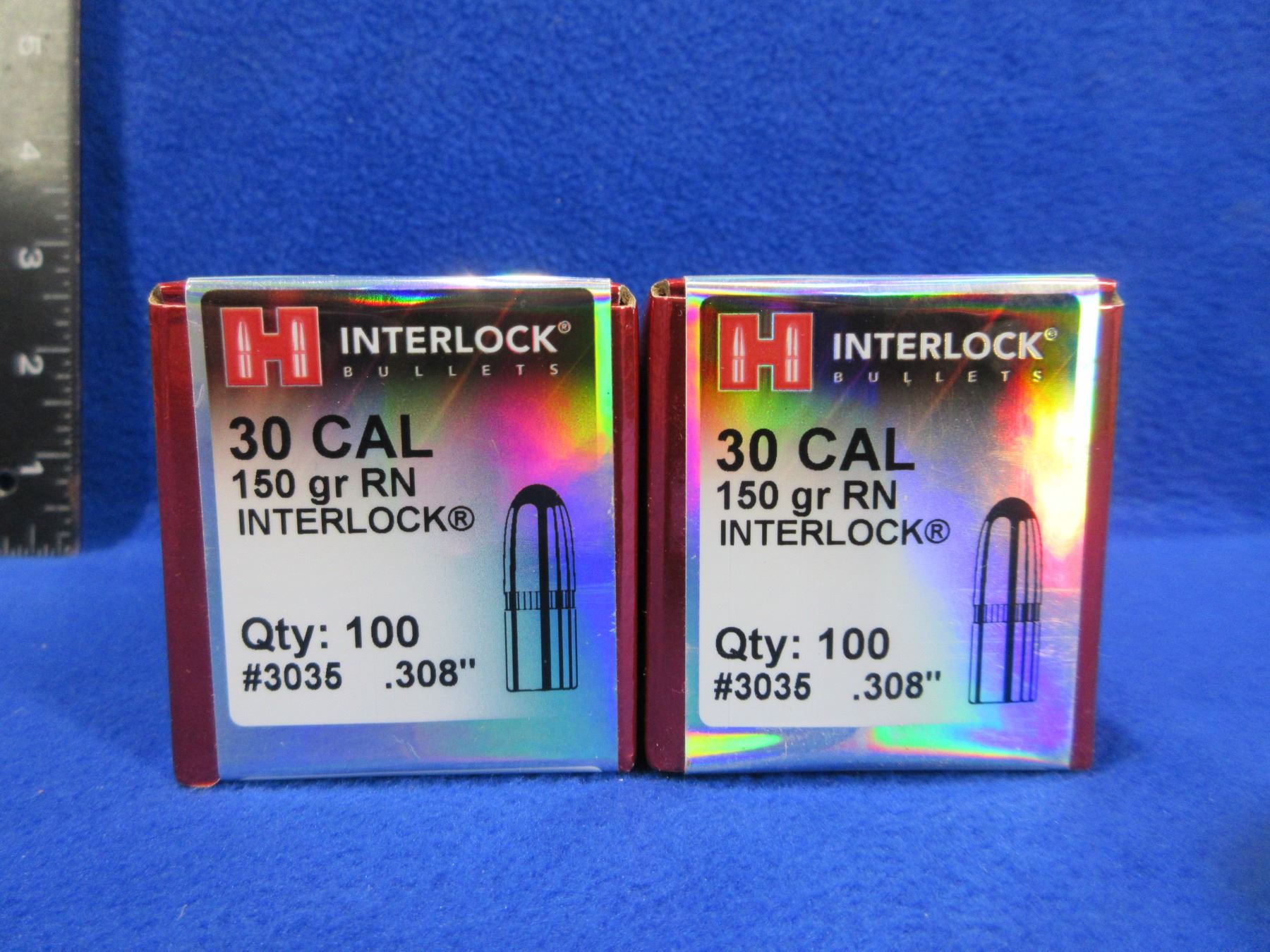 NEW - 30 Cal. .308" 150gr RN Interlock Hornady Bullets - 2 Boxes of 100