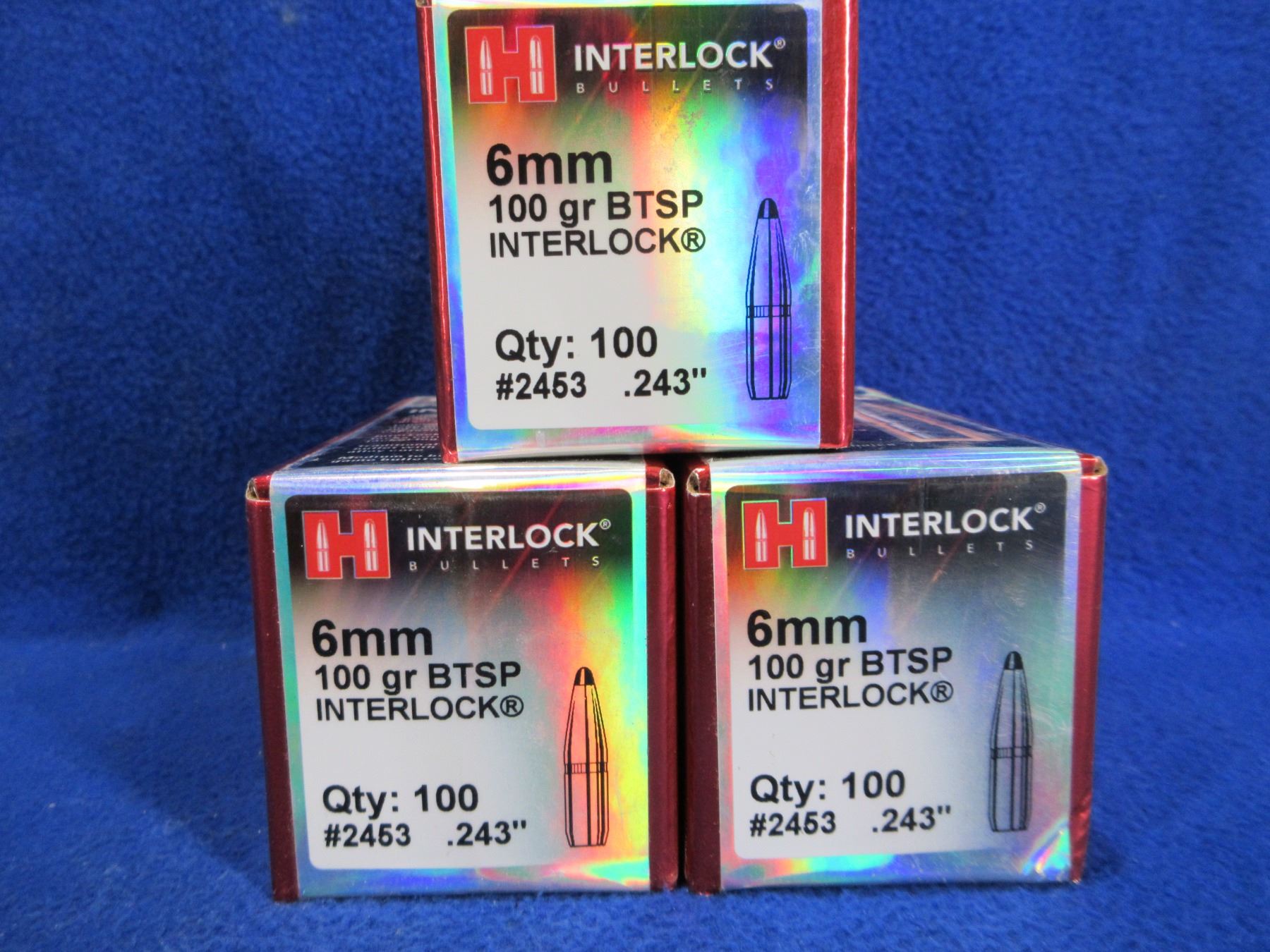 NEW - 6MM .243" 100gr BTSP Interlock Hornady Bullets - 3 Boxes of 100