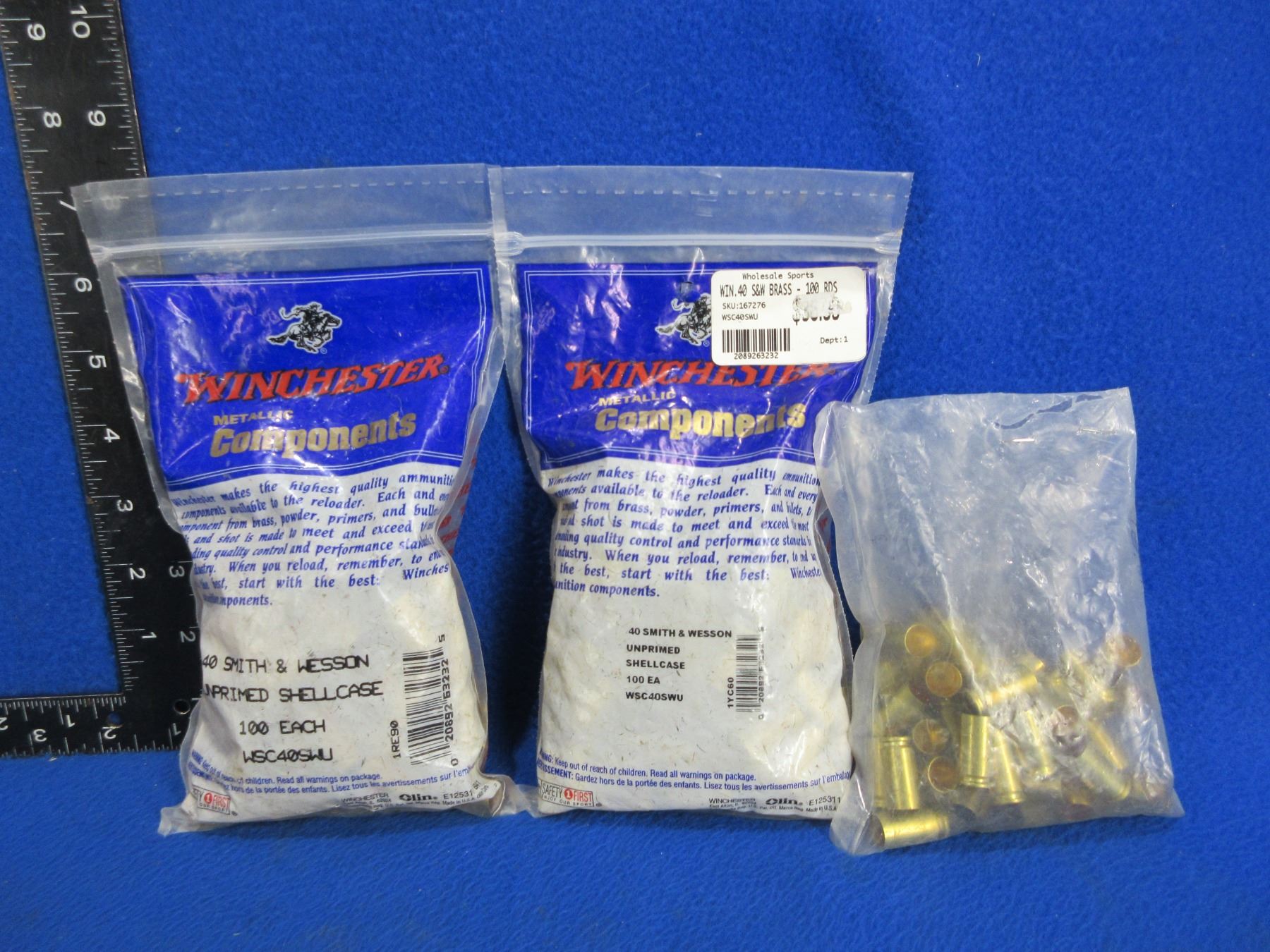 NEW - Brass Only - 40 S&W Unprimed - 2 Bags of 100 (Winchester), Bag of 40
