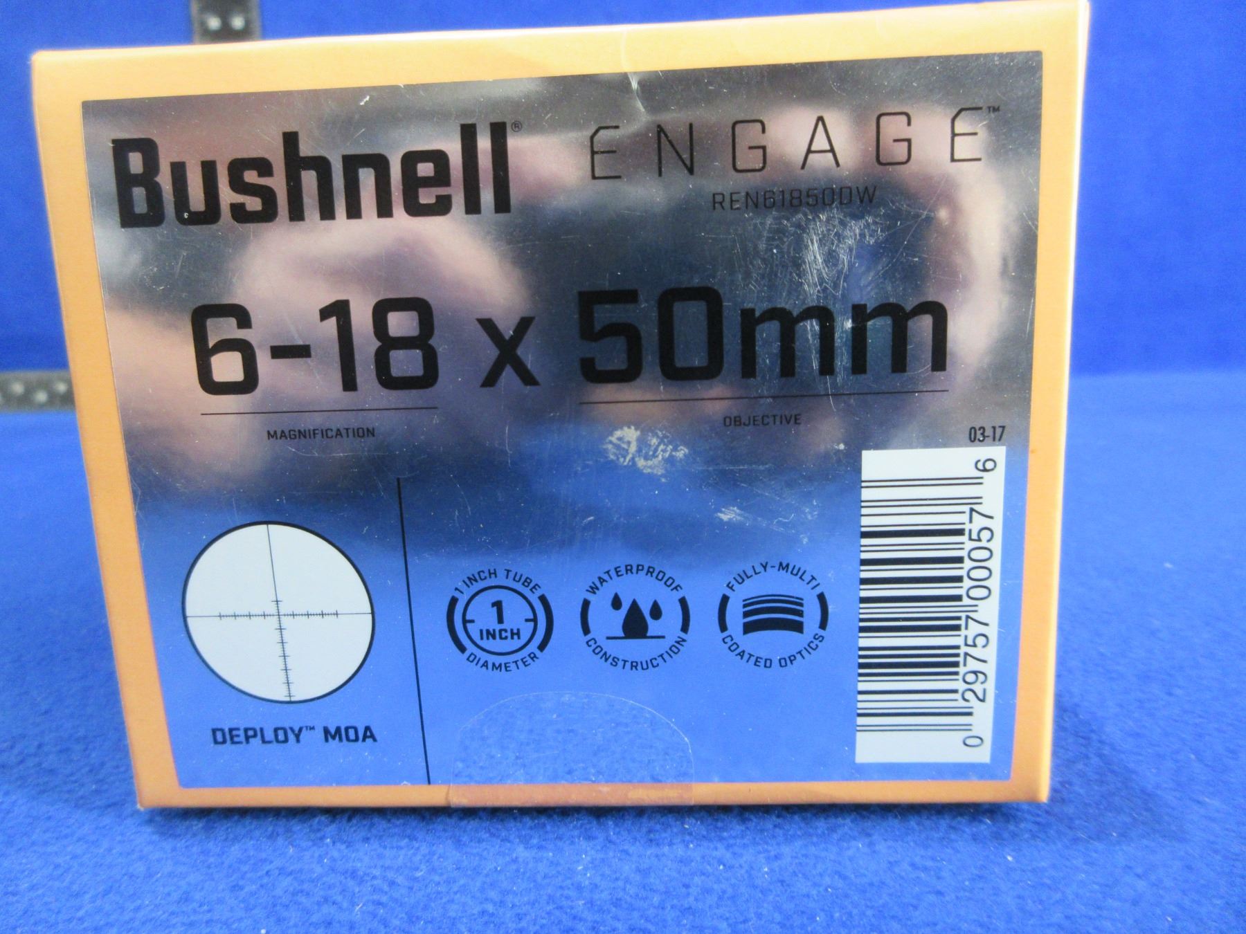 NEW - Bushnell Engage 6-18x50 Scope - Appears Clear - Deploy MOA Reticle - Comes with original box, flip-up lens covers and papers
