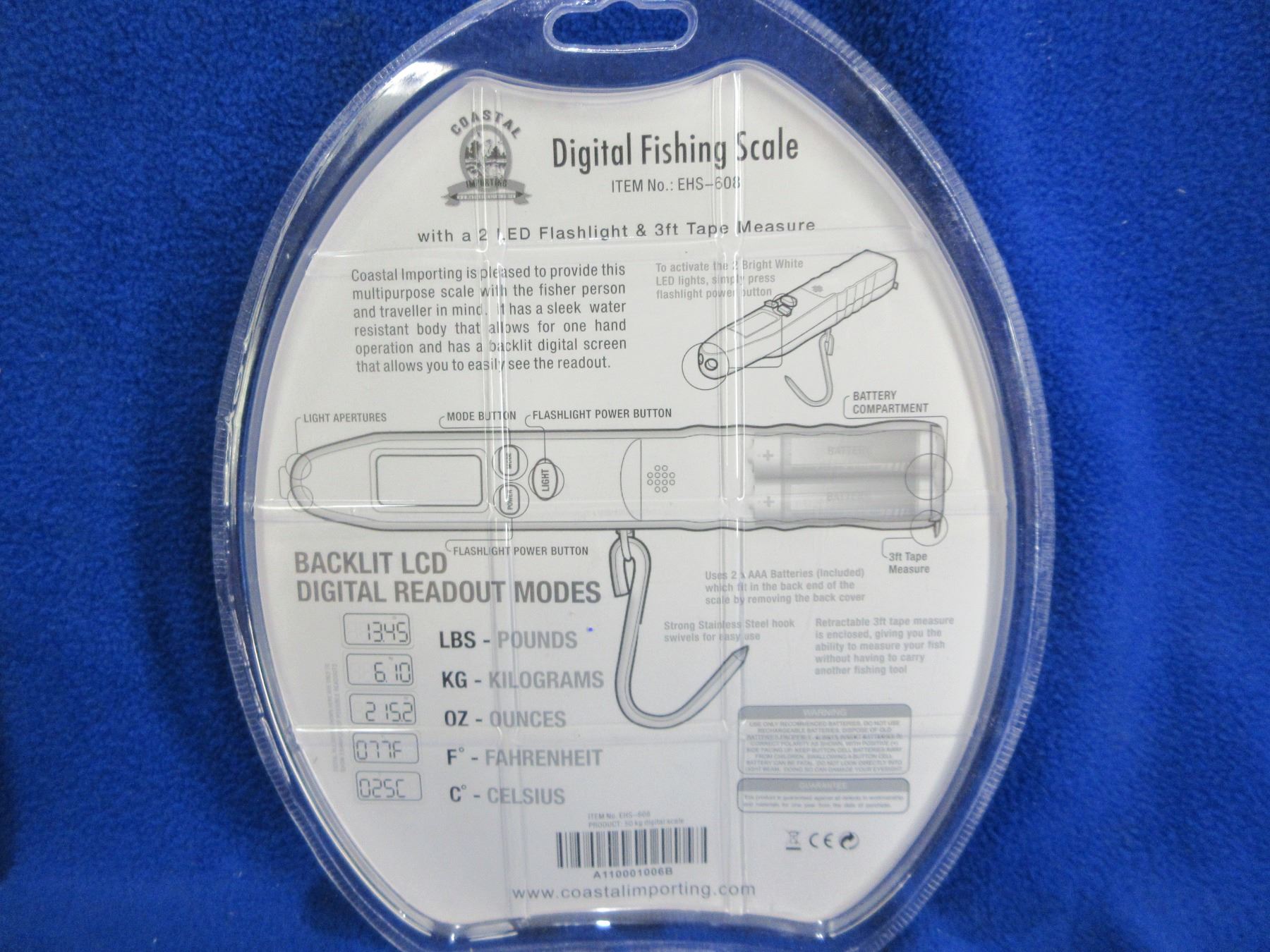 NEW - Coastal Importing Digital Fishing Scale w/ Flashlight & Tape Measure