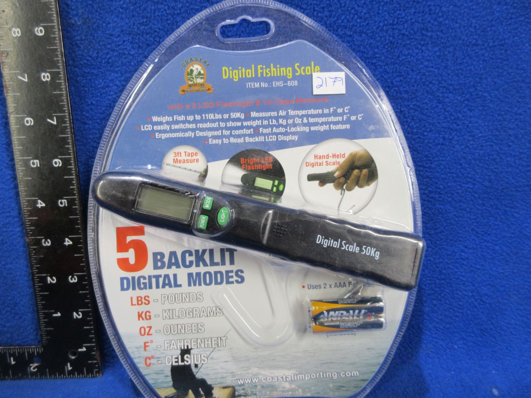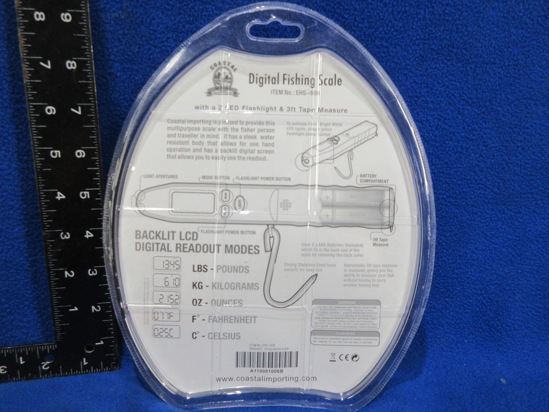 NEW - Coastal Importing Digital Fishing Scale w/ Flashlight & Tape Measure