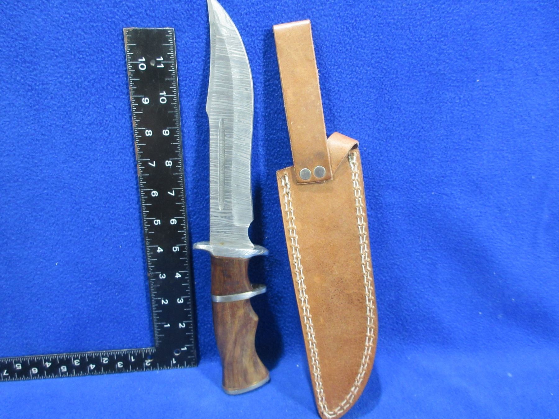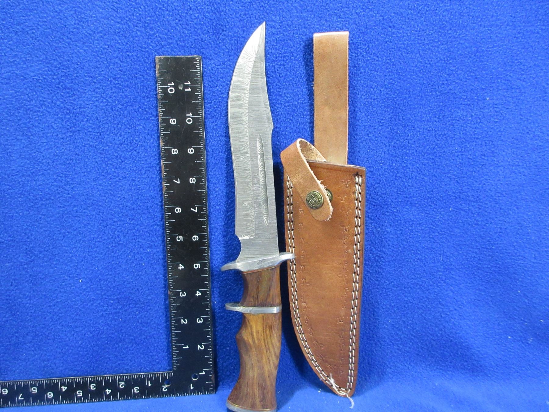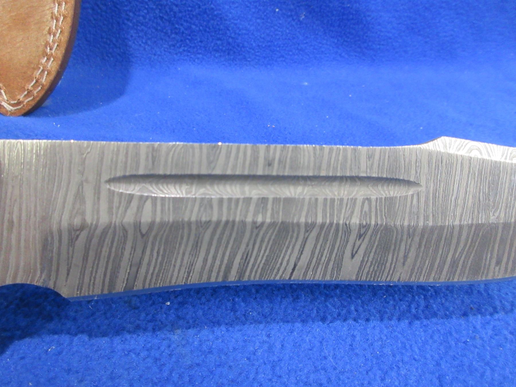 NEW - Fixed Blade Damascus Knife with Leather Sheath - 8" Blade, 13" Total Length