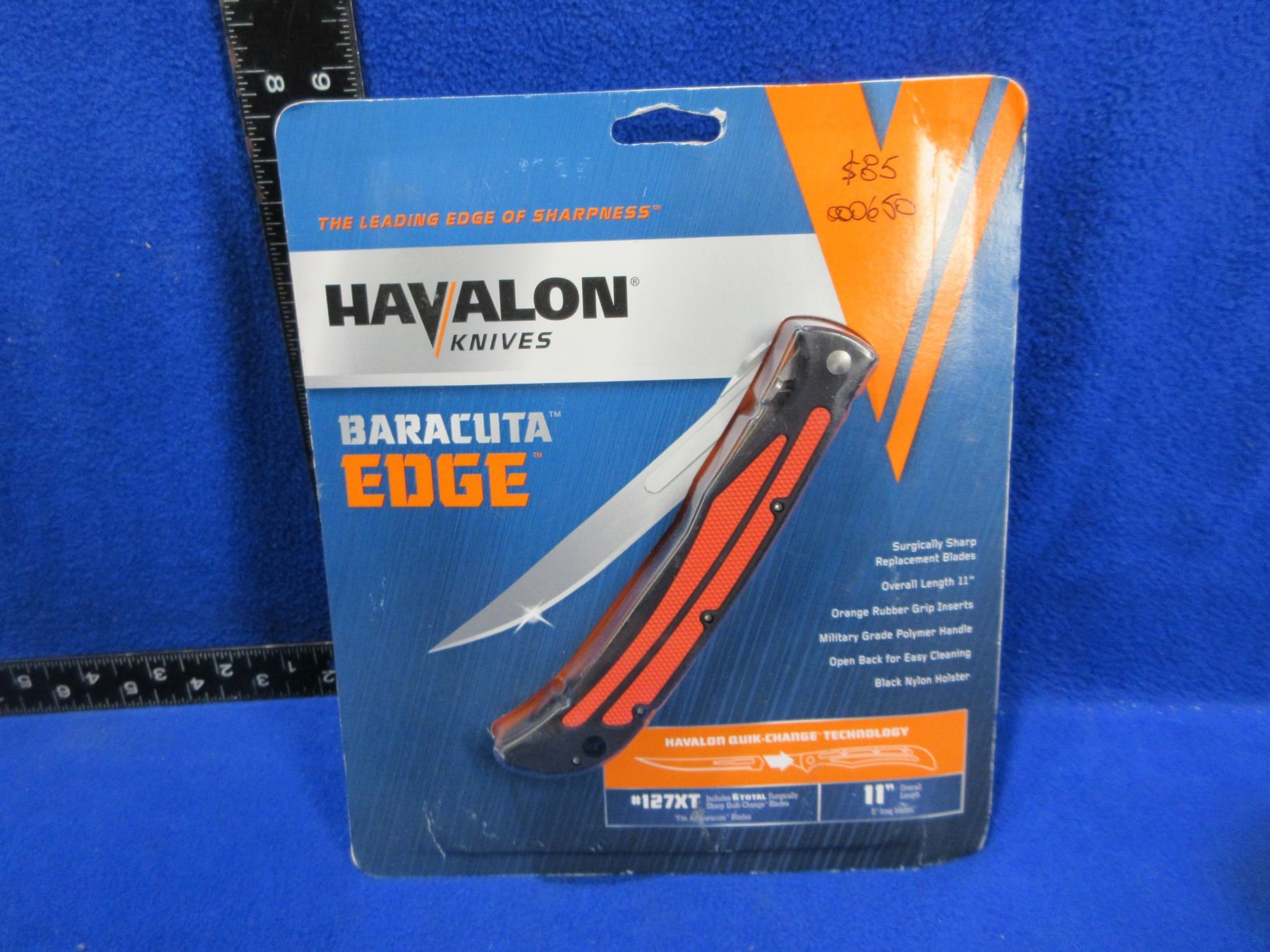 NEW - Havalon Knife - Baracuta Edge Quik-Change Blade - Comes with Black Nylon Holster and 5 Replacement Blades