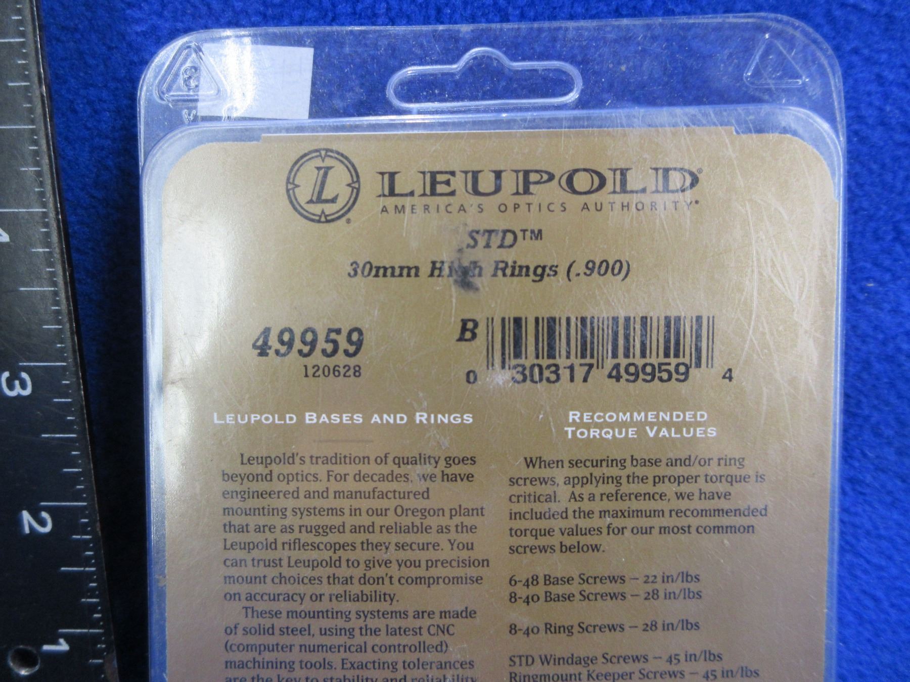 NEW - Leupold STD 30MM High Rings - Matte, # 49959
