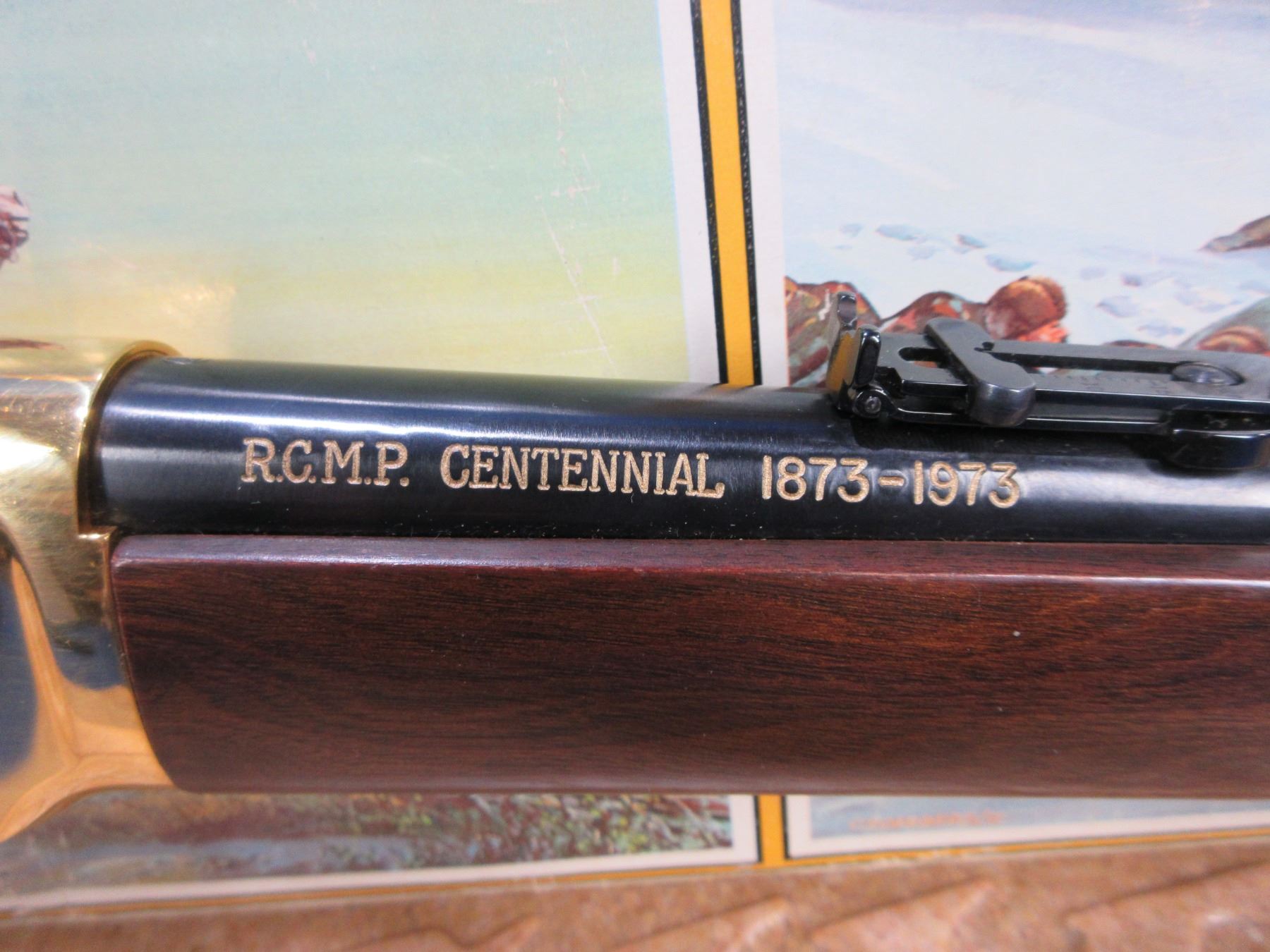 NEW - Non-Restricted - Winchester 94 RCMP 1873 - 1973 Centennial Saddle Ring Carbine in 30-30 - This lever action rifle with tube magazine is NEW, never fired. Barrel is 22", comes with original box (very damaged). Ser #RCMP6375