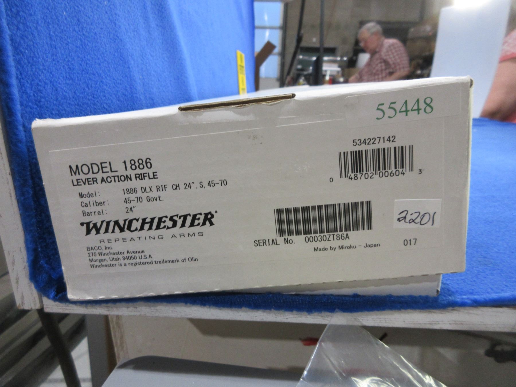 NEW - Non-Restricted - Winchester Model 1886 in 45-70 Govt - This is a NEW lever action rifle with tube magazine. Barrel is 24", length of pull is 13 1/2", comes with original box, lock and instruction manual. Ser # OOO30ZT36A