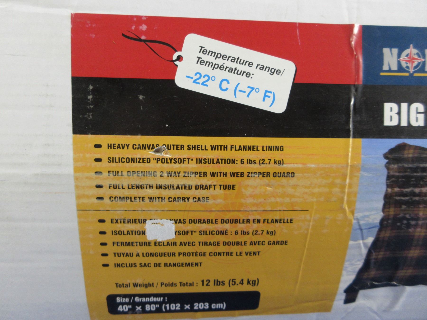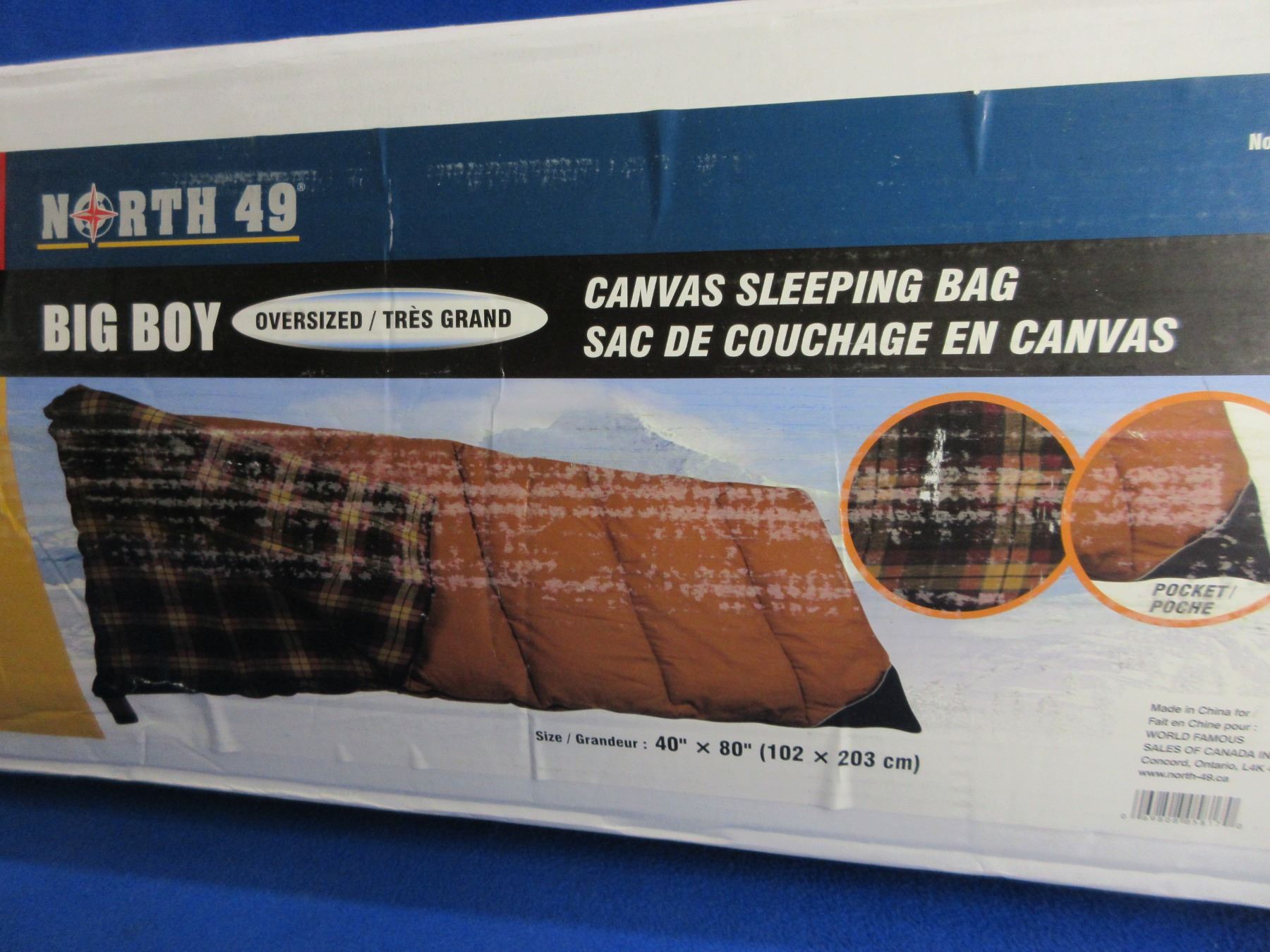 NEW - North 49 Big Boy Oversized Canvas Sleeping Bag - 40" x 80"