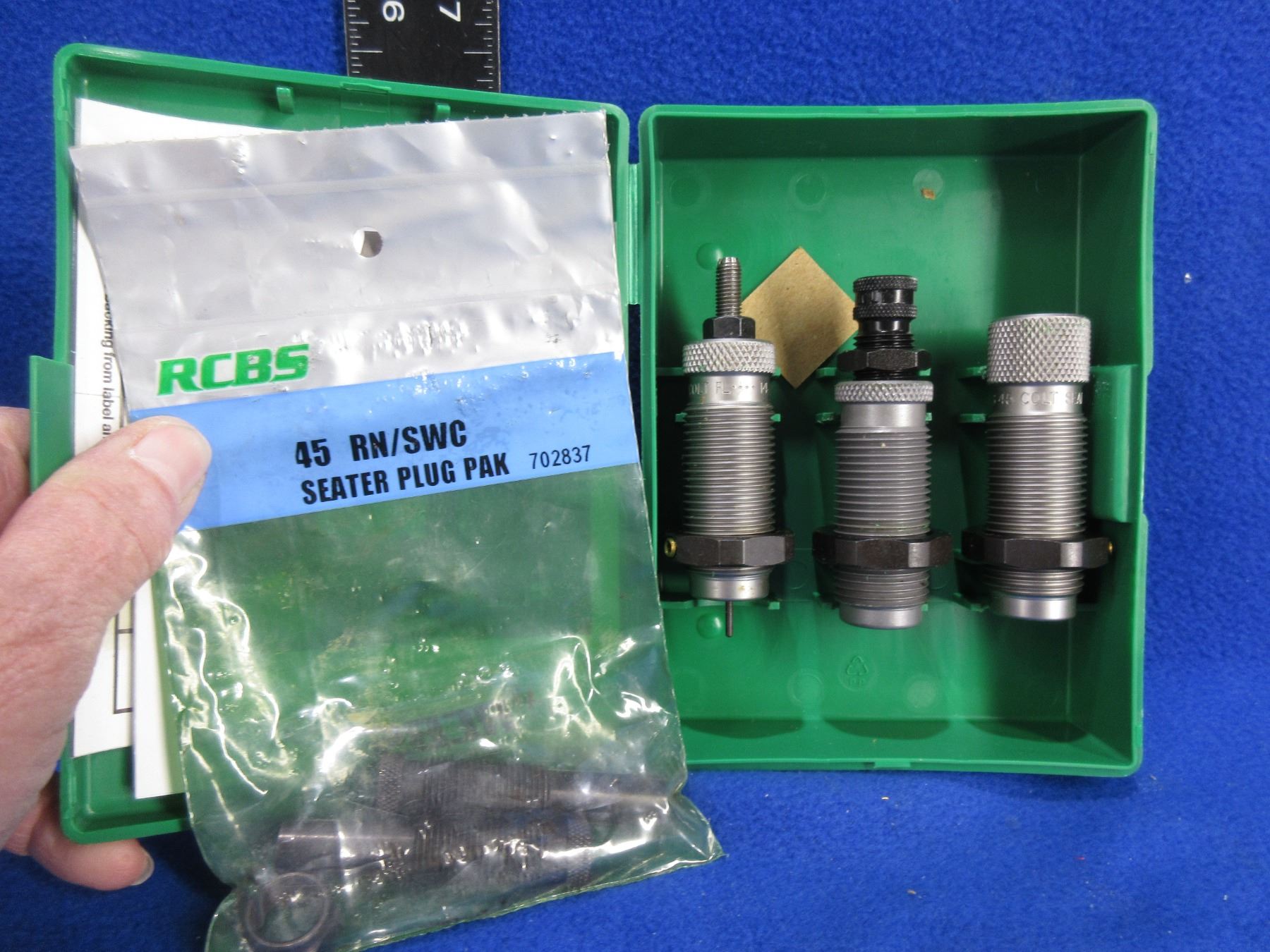 NEW - RCBS 45 Colt 3 Die Steel Set with RN/SWC Seater Plug Pack