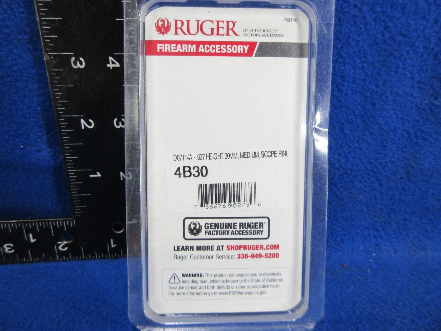 NEW - Ruger 30MM Medium Scope Ring 4B30