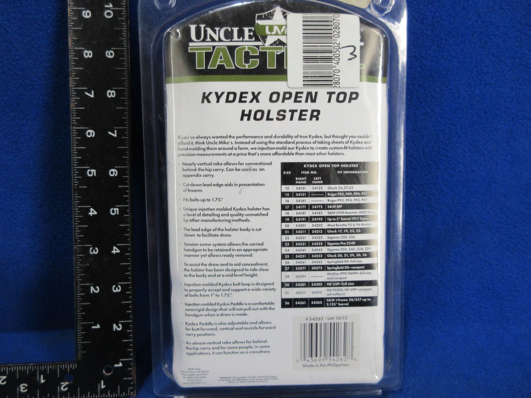 NEW - Uncle Mike's Tactical Kydex Open Top Holster Fits Springfield XD (Full Size) - Size 26 Left Hand 54262