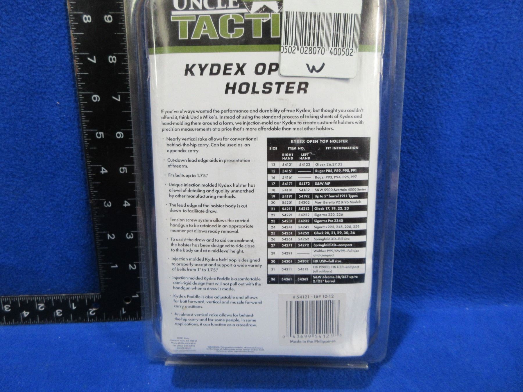 NEW - Uncle Mike's Tactical Kydex Open Top Holster - Fits Glock 26, 27, 33, 28 - Size 12 Right Hand 54121