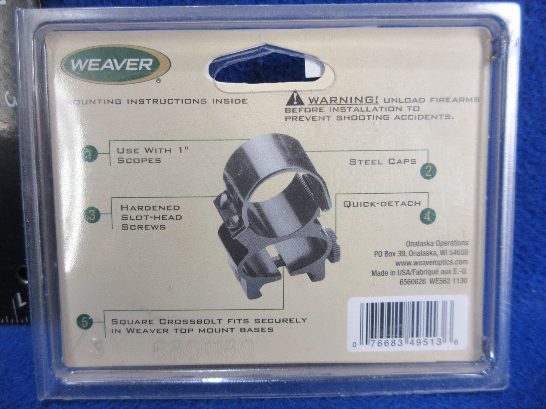NEW - Weaver 1" See-Thru Detachable Rings - Gloss Black