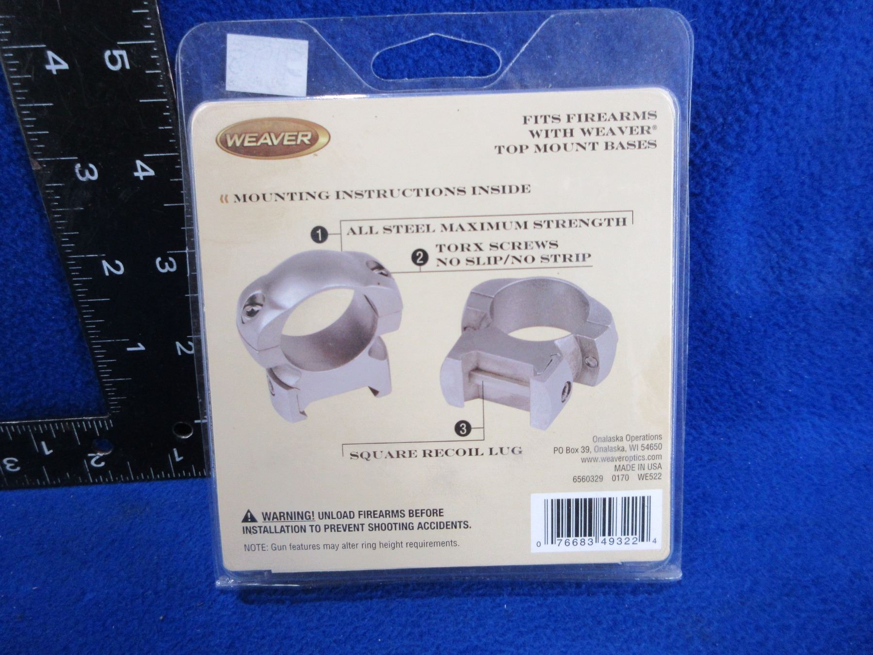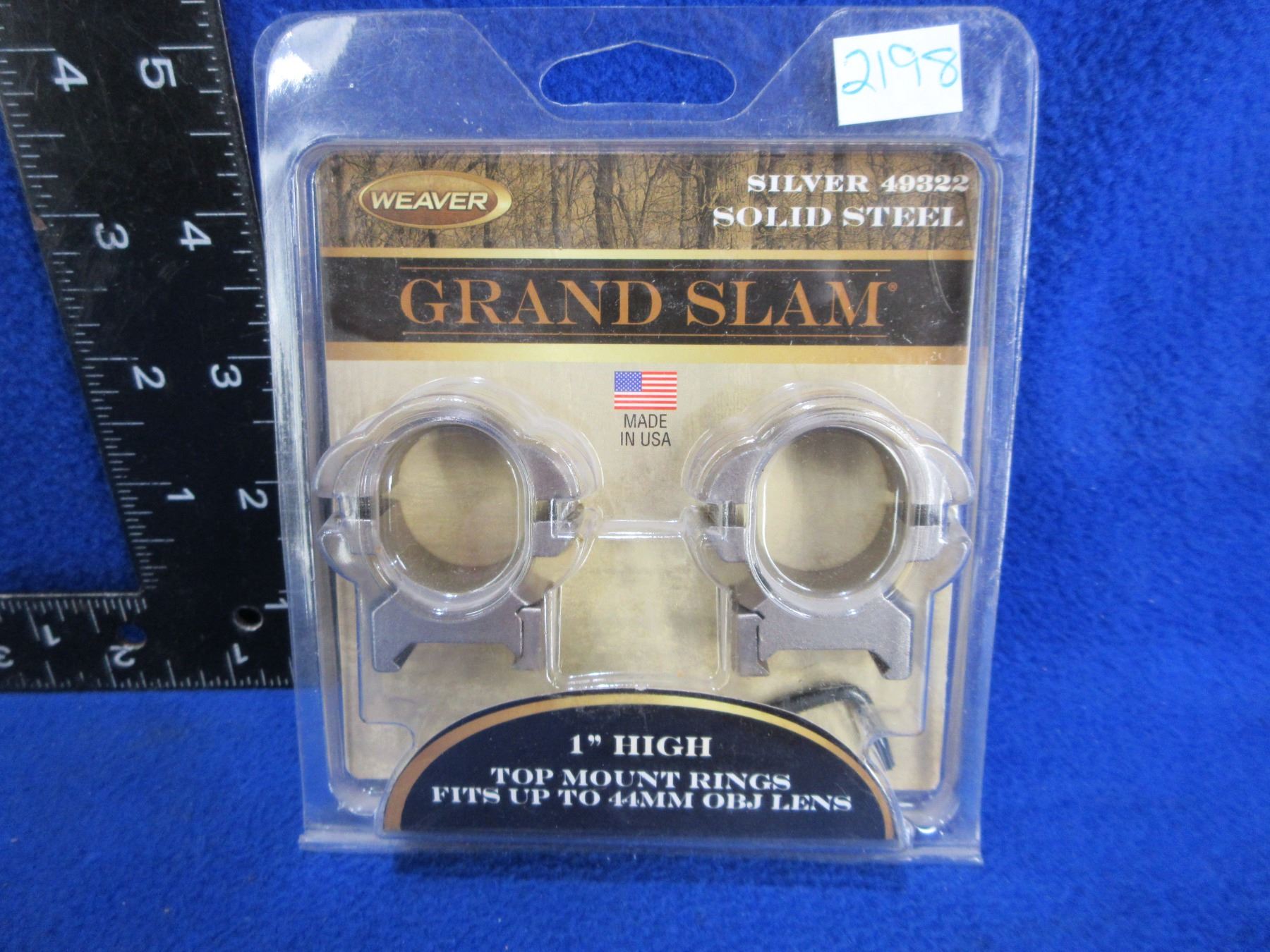 NEW - Weaver Grand Slam 1" High Top Mount Rings Silver # 49322 - Solid Steel