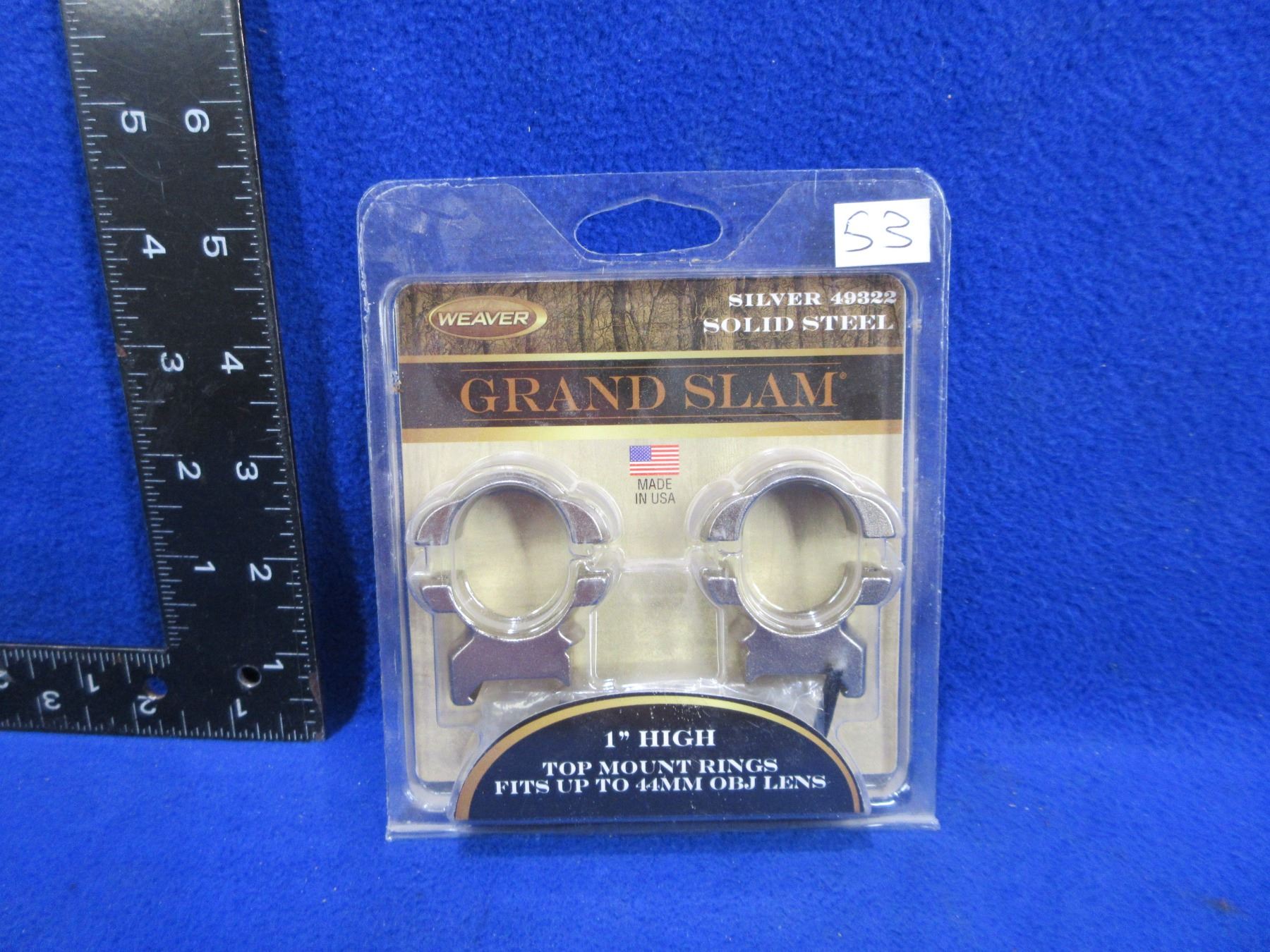 NEW - Weaver Grand Slam 1" High Top Mount Rings - Silver, Solid Steel # 49322