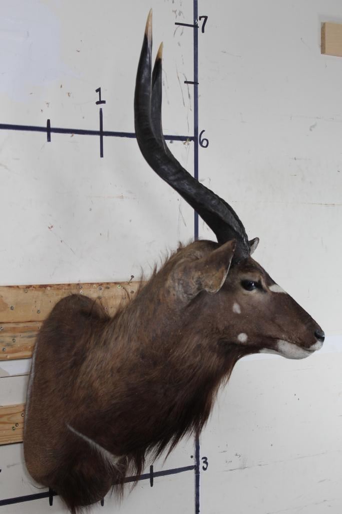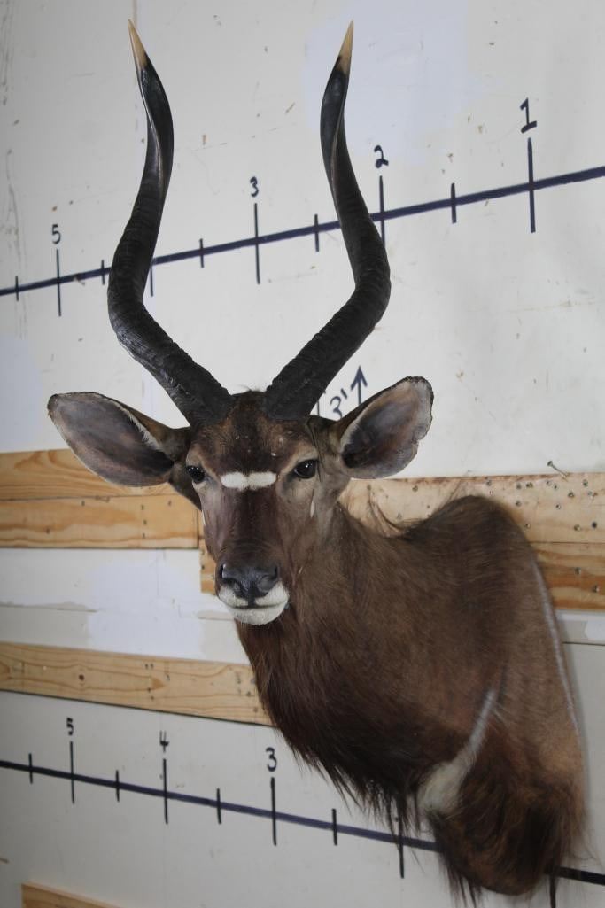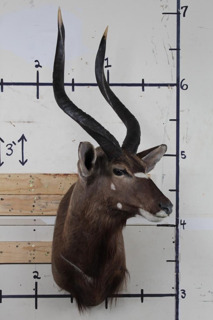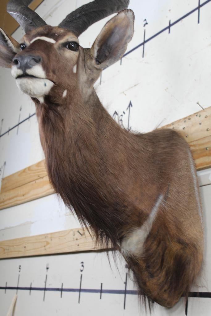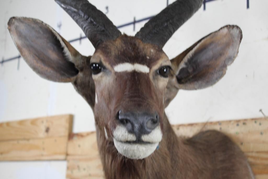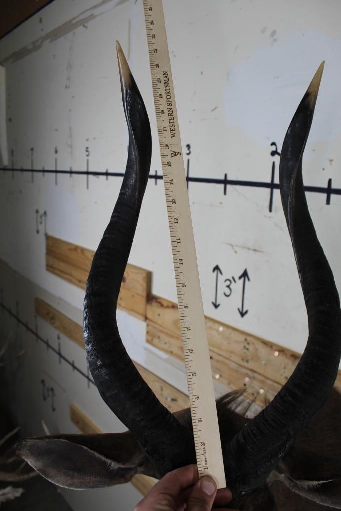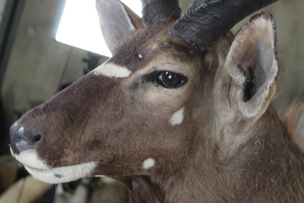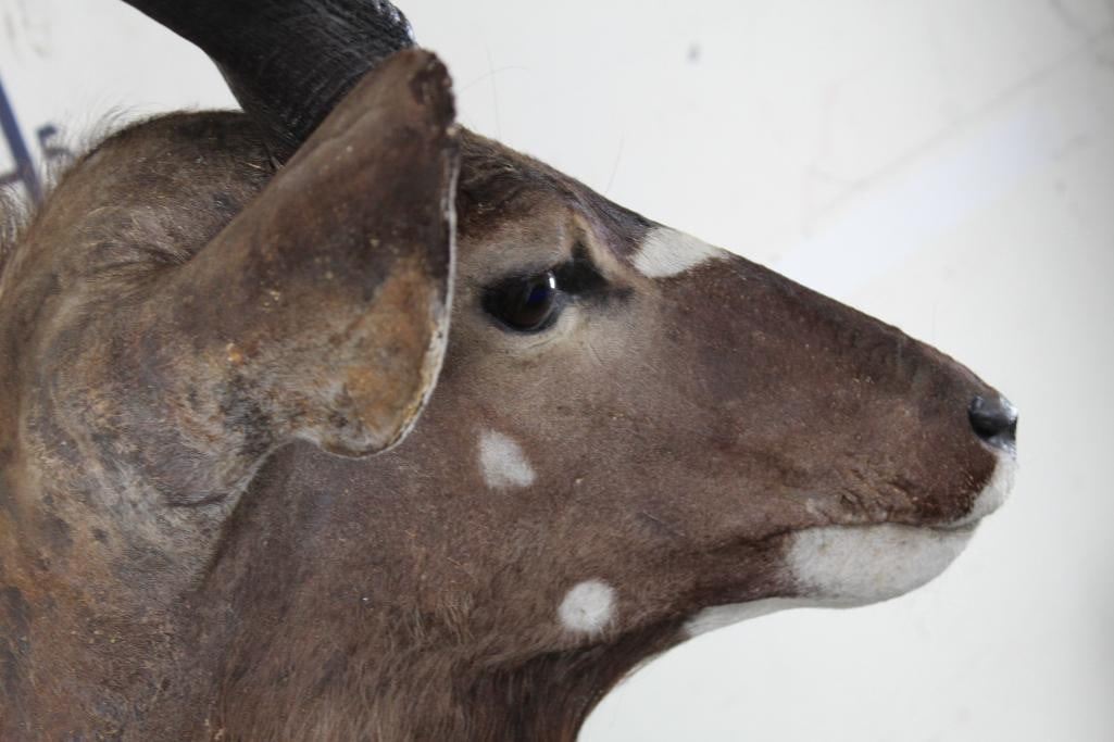 Older NYALA Shoulder Mount in Fair Condition. Right Horn measures approx.27.25" Long and Left Horn measures approx.26 7/8" Long. TAXIDERMY