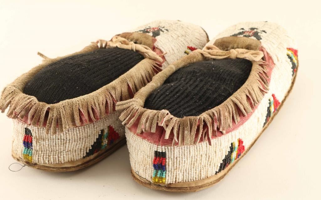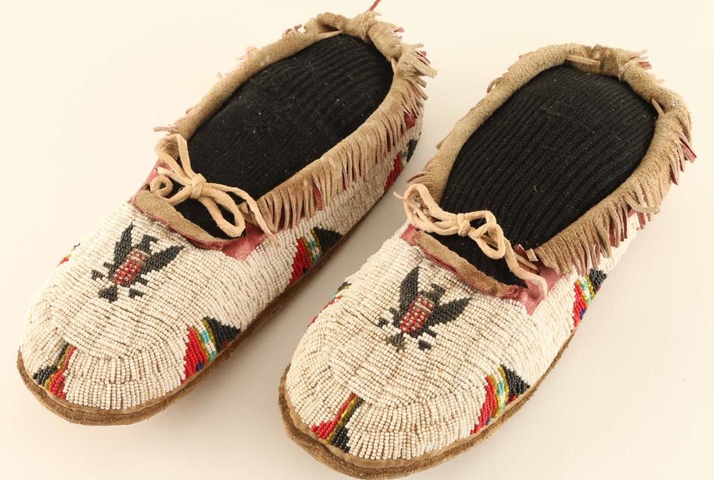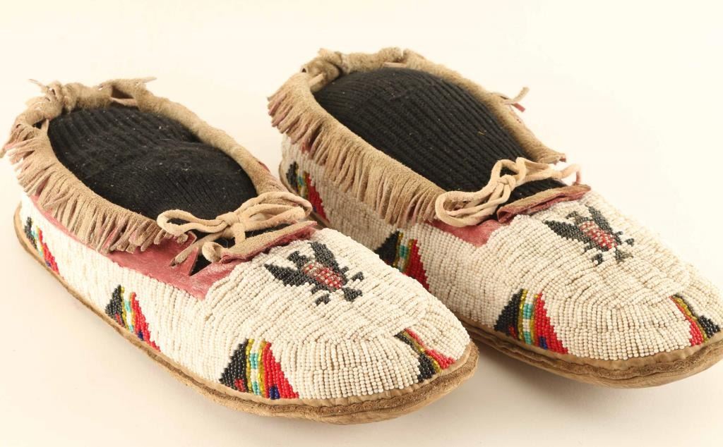 With Eagle Beaded Design All White With Black And Red Accents On Leather Good Condition Overall.