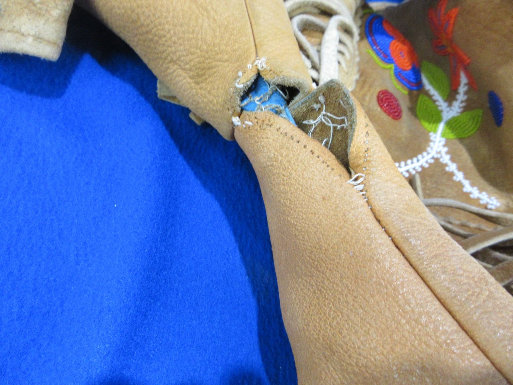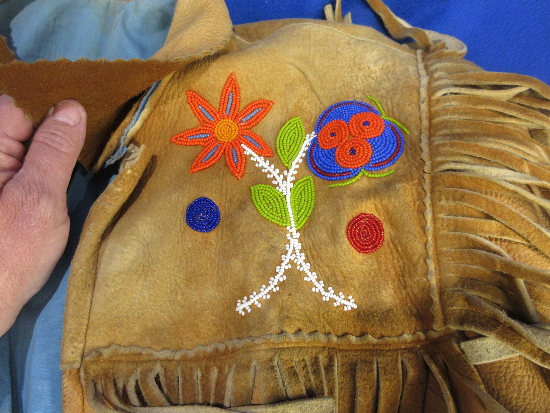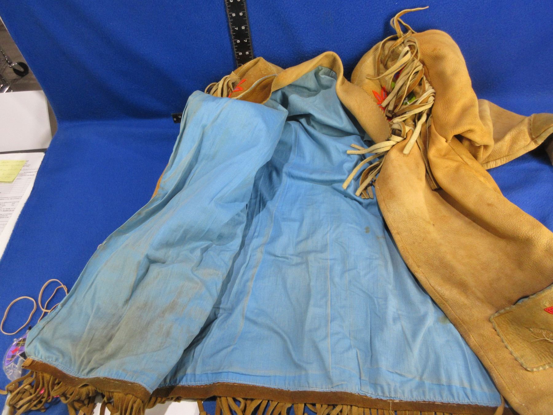 Native American Buckskin Jacket with Fringes & Beadwork - Size Small to Medium - Lining Needs Repair, Some Beadwork on Front Needs Repair