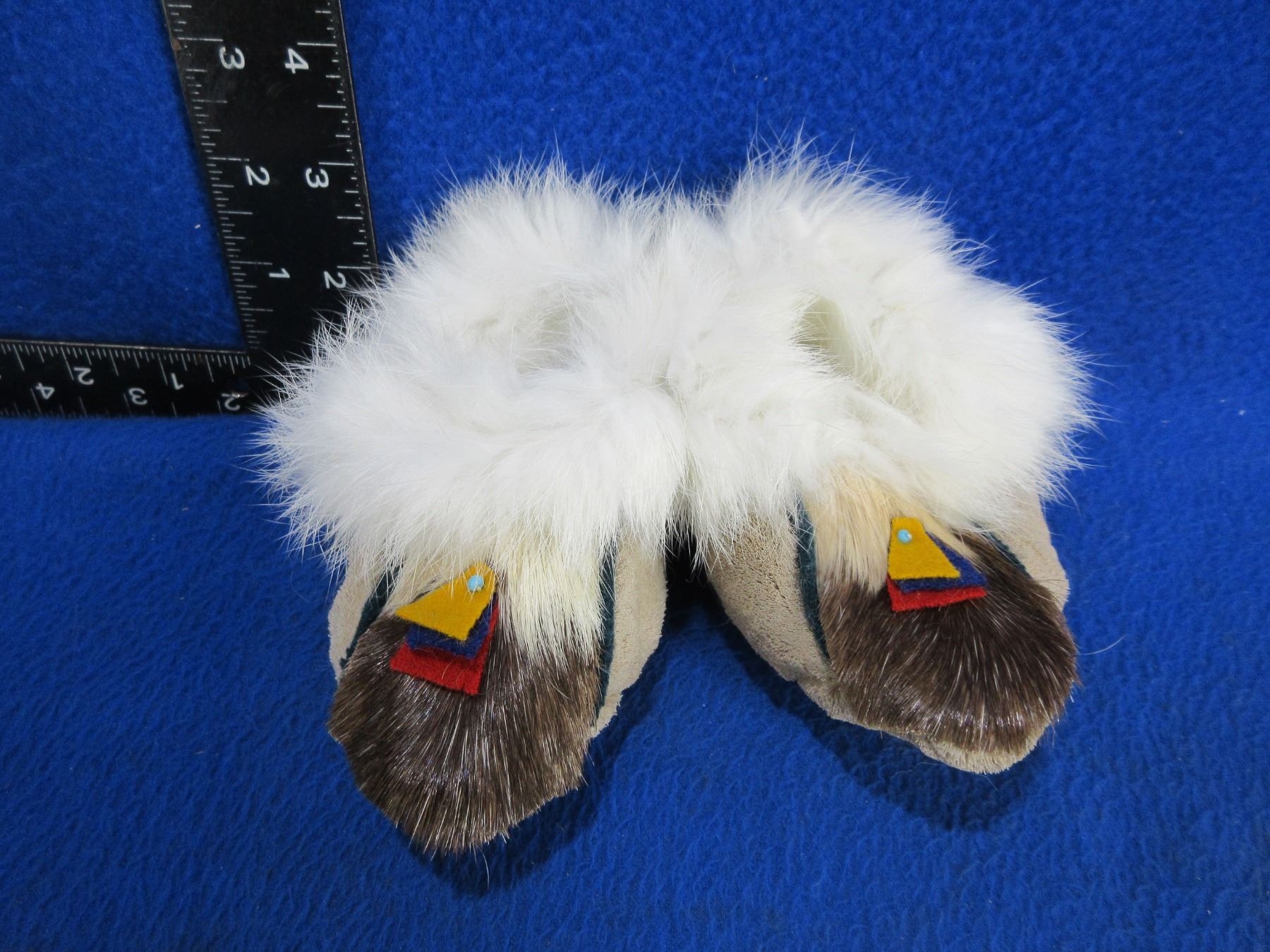 Native American Childs Mocassins with Fur Trim - 5" Sole
