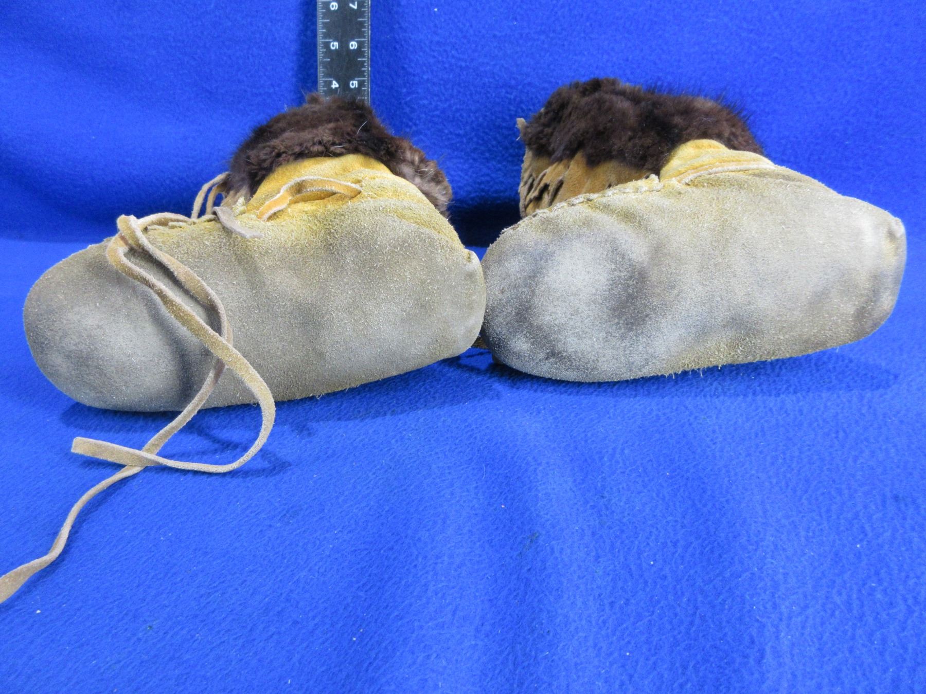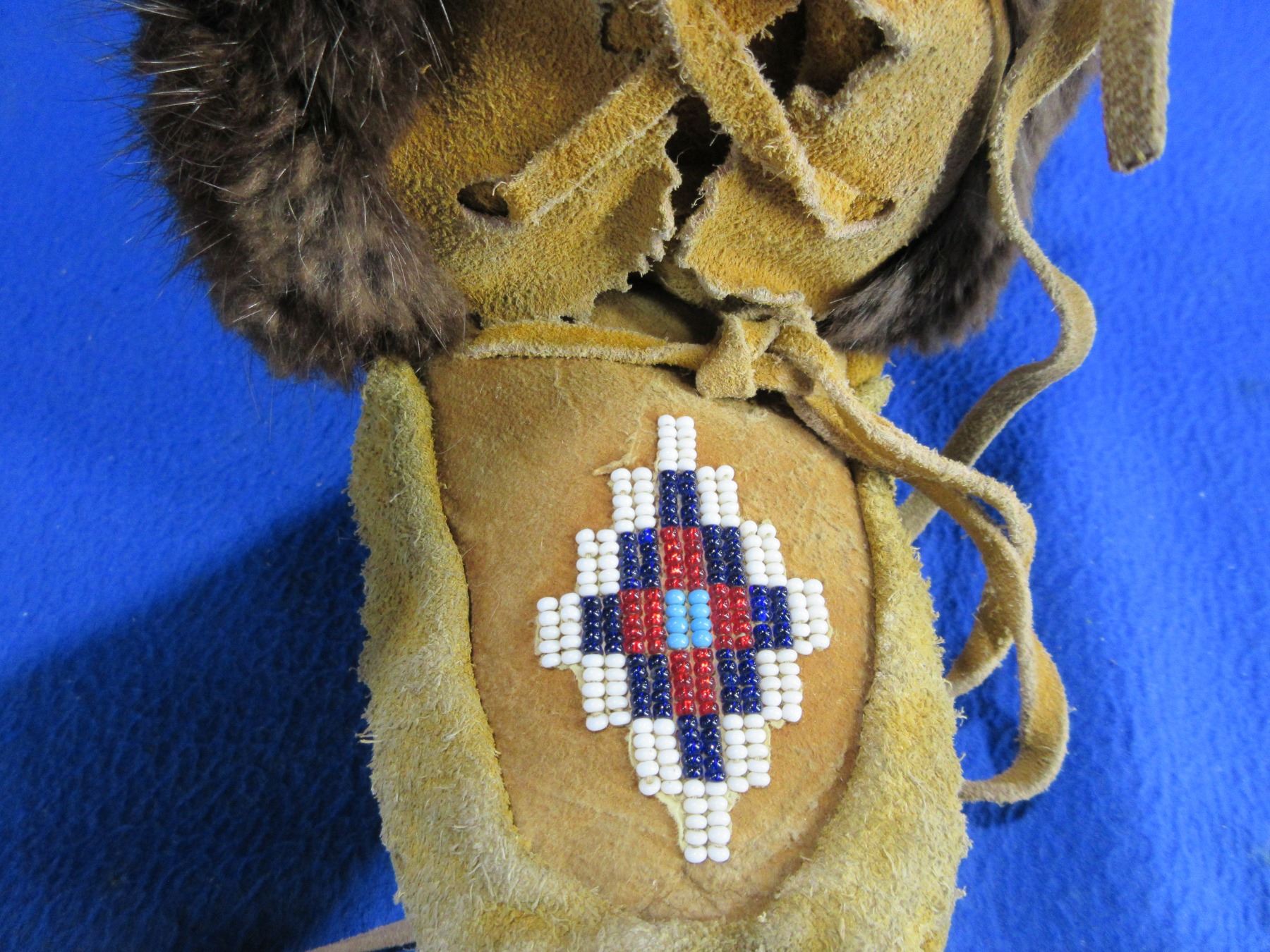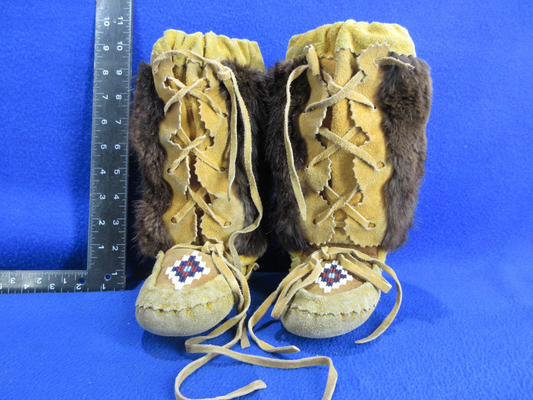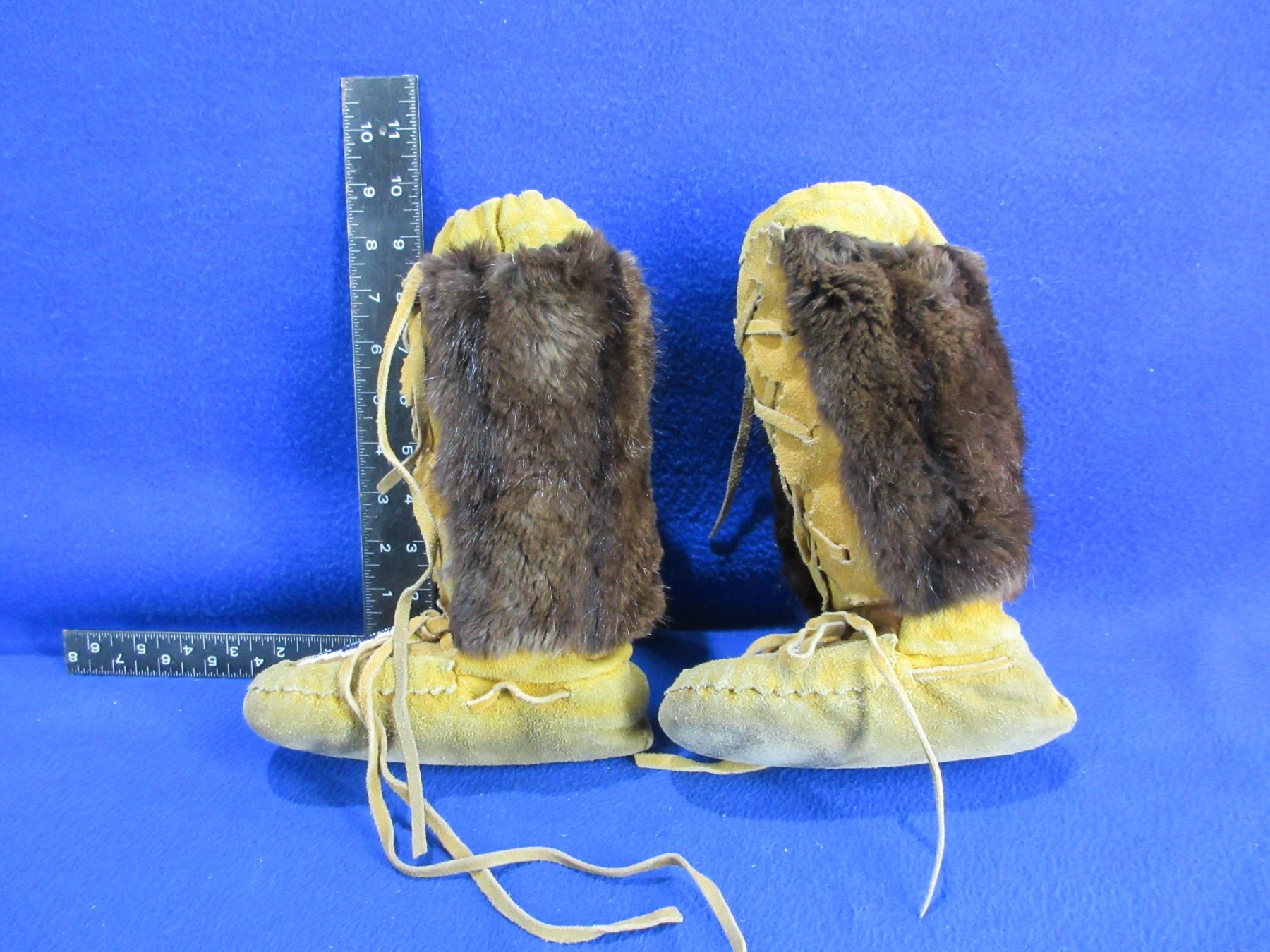Native American Childs Mukluks with Fur and Beadwork - 6 1/2" Sole