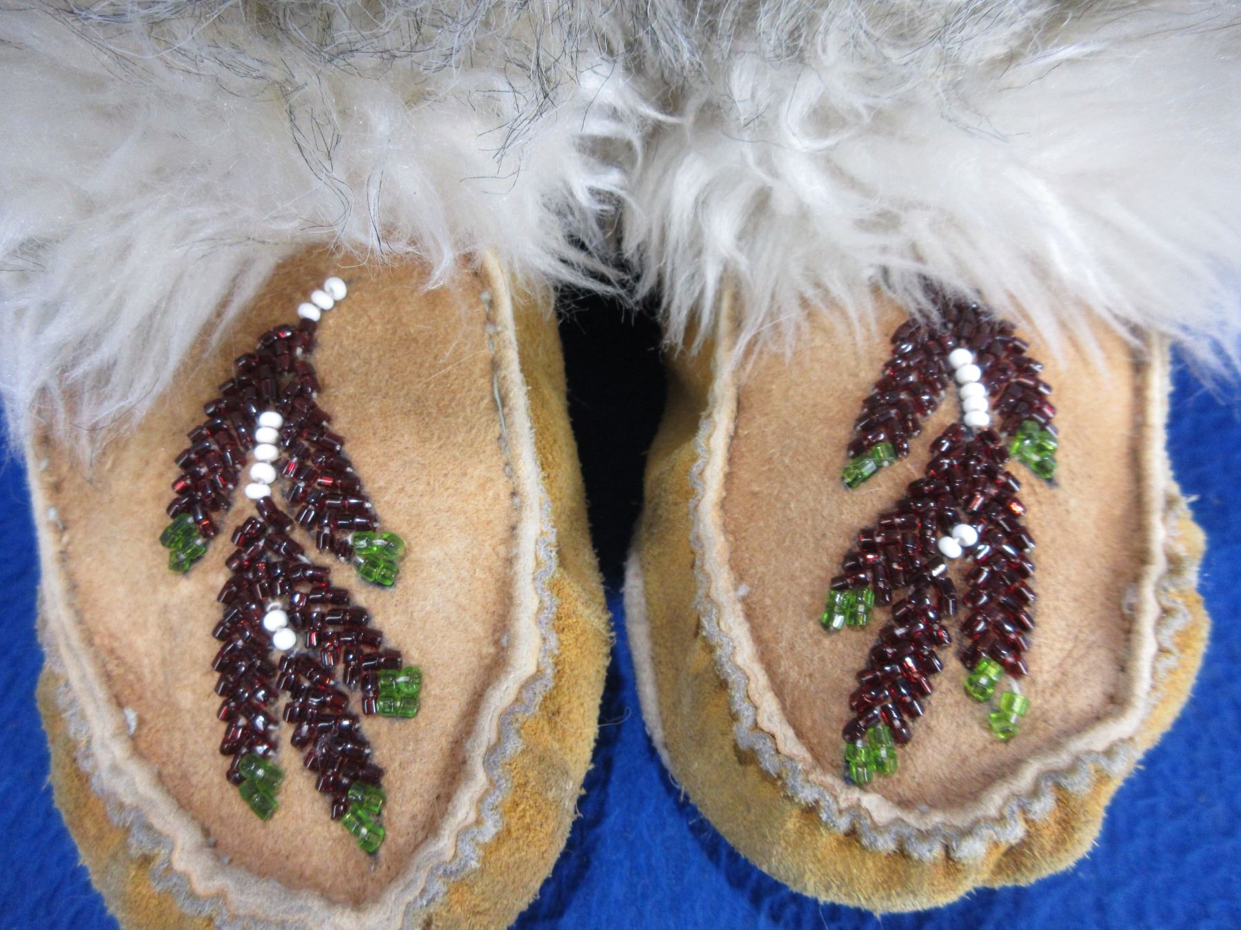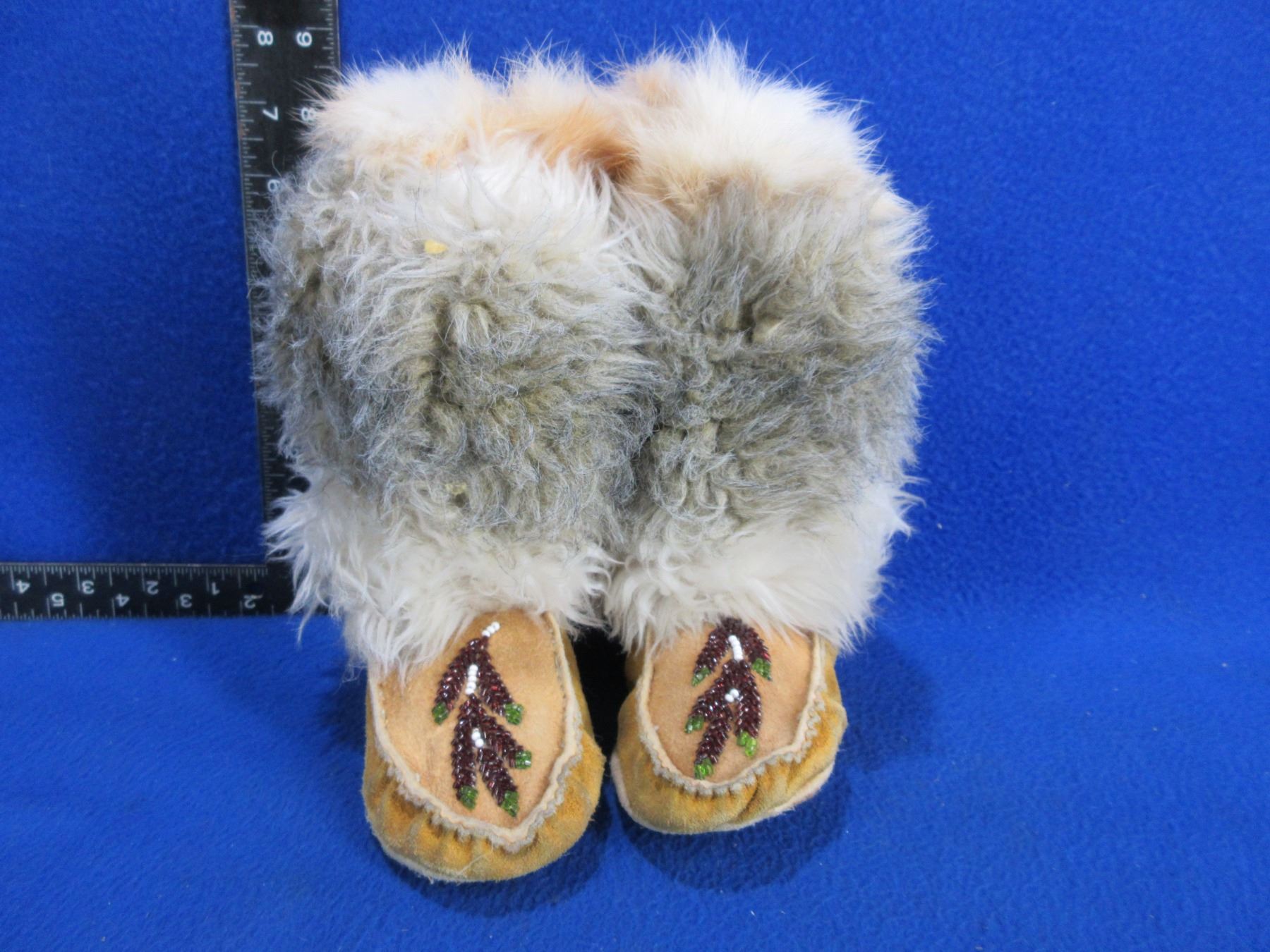 Native American Childs Mukluks with Fur and Beadwork - 6" Sole