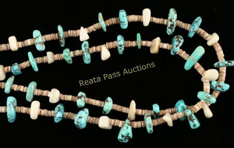 Double strand nugget style beads on woven thread with shell and heishi beads in between. Retail $700