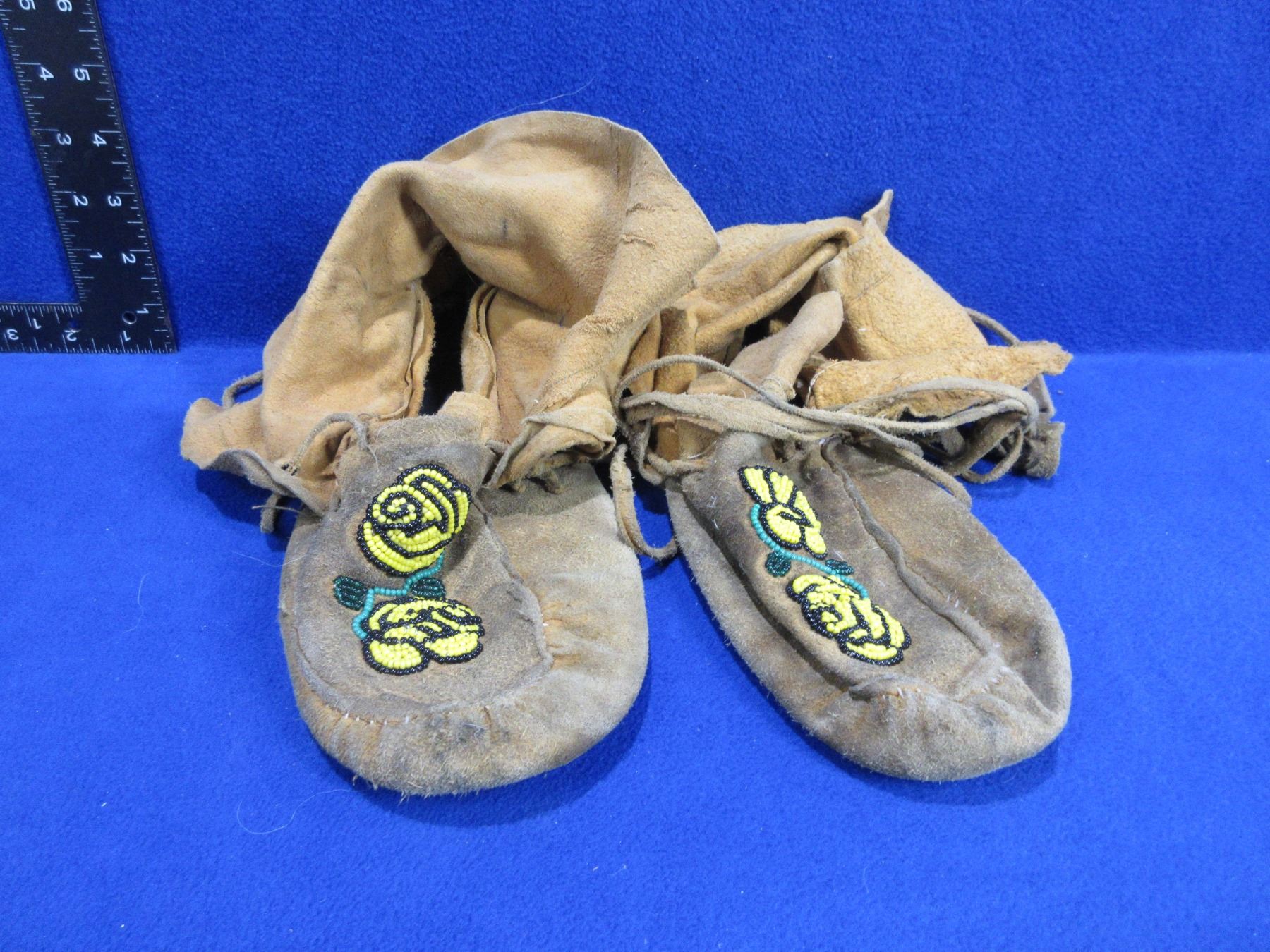 Native American Mukluks with Beadwork - 10" Sole - 1 mukluk has 2 small holes in the back and some stitching coming out