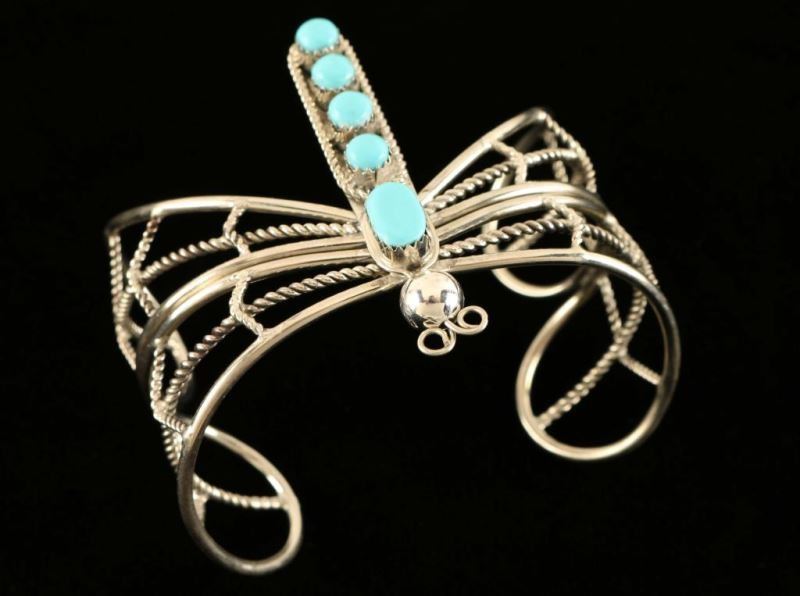 Beautiful and unique openwork sterling silver wires form the butterfly wings with a turquoise stone body and silver head.
