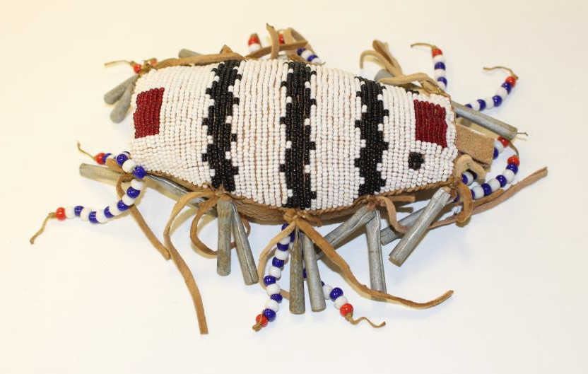 Native American beaded Fetish. White & Black beads wth Red, White and Blue tassels. Est:$150-300