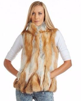 Donation: Natural Grey and Red Fox Vest, 23 inches in length,