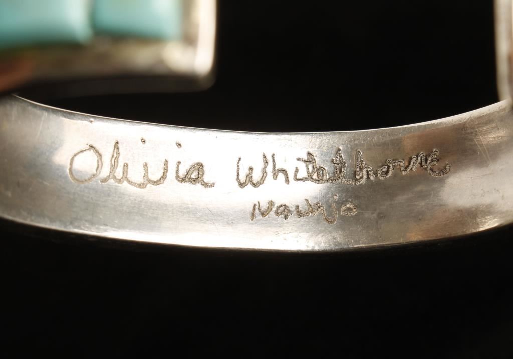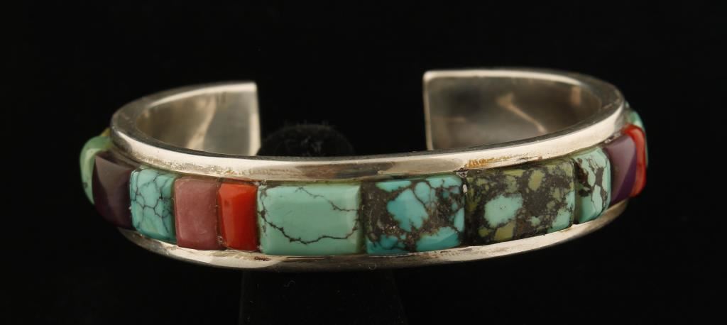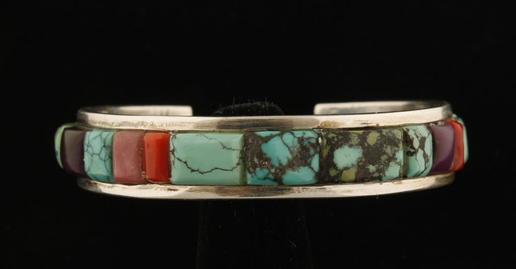 Turquoise, red coral, sugulite, and more. Signed by artist Olivia Whitethorne on back, set in sparkling sterling silver.