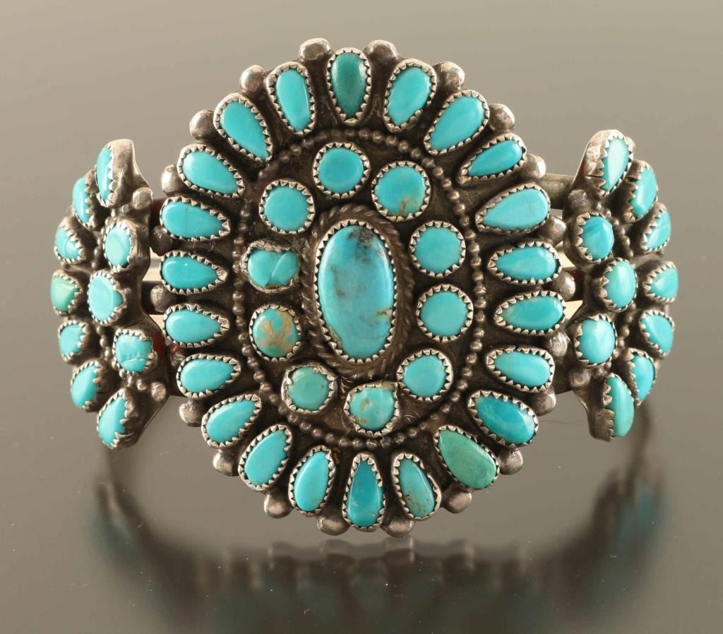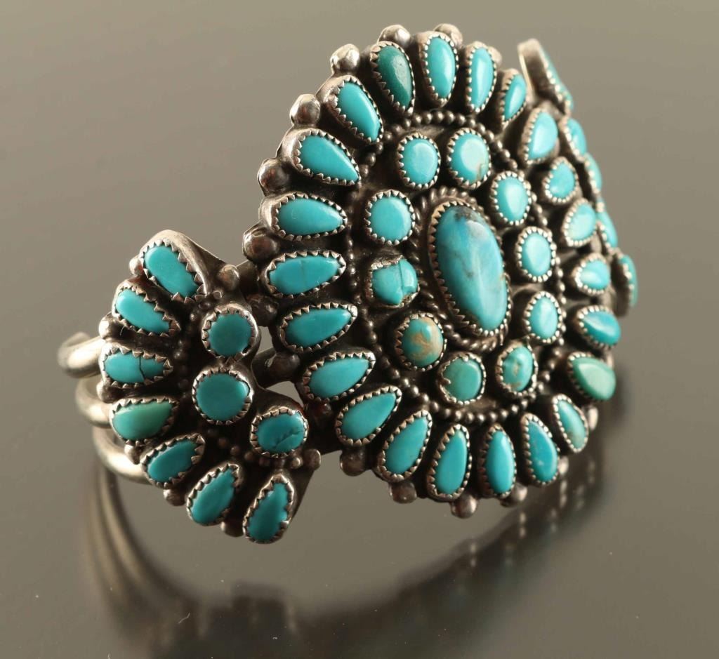 1960's Era, Turquoise Stones Set In Sterling, Unmarked Measures 6.5" With A 2"gap.
