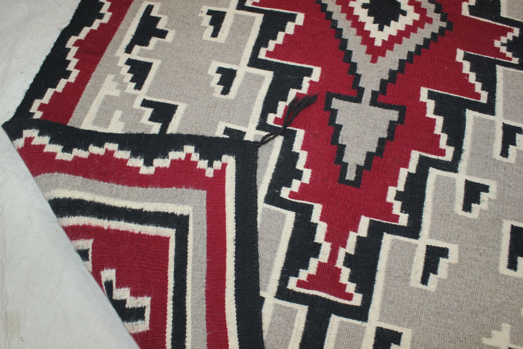 Handwoven Navajo Ganado rug, circa 1940, with bold geometric pattern. Dimensions 42"x 65".