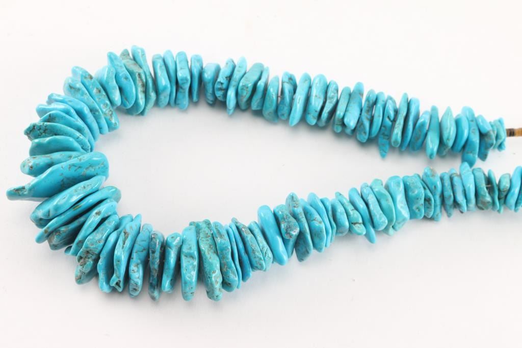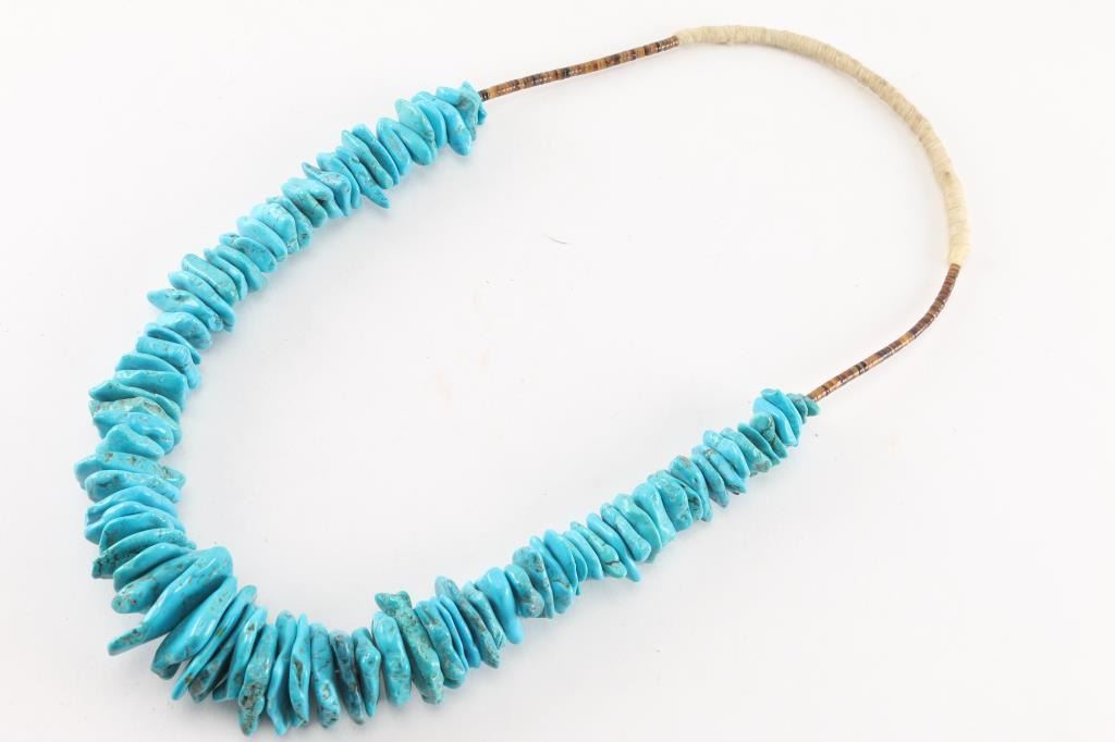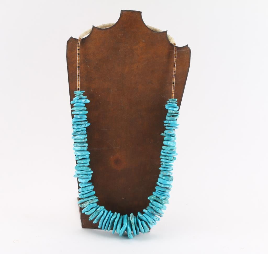 Large and heavy turquoise beaded necklace accented with heishi beads