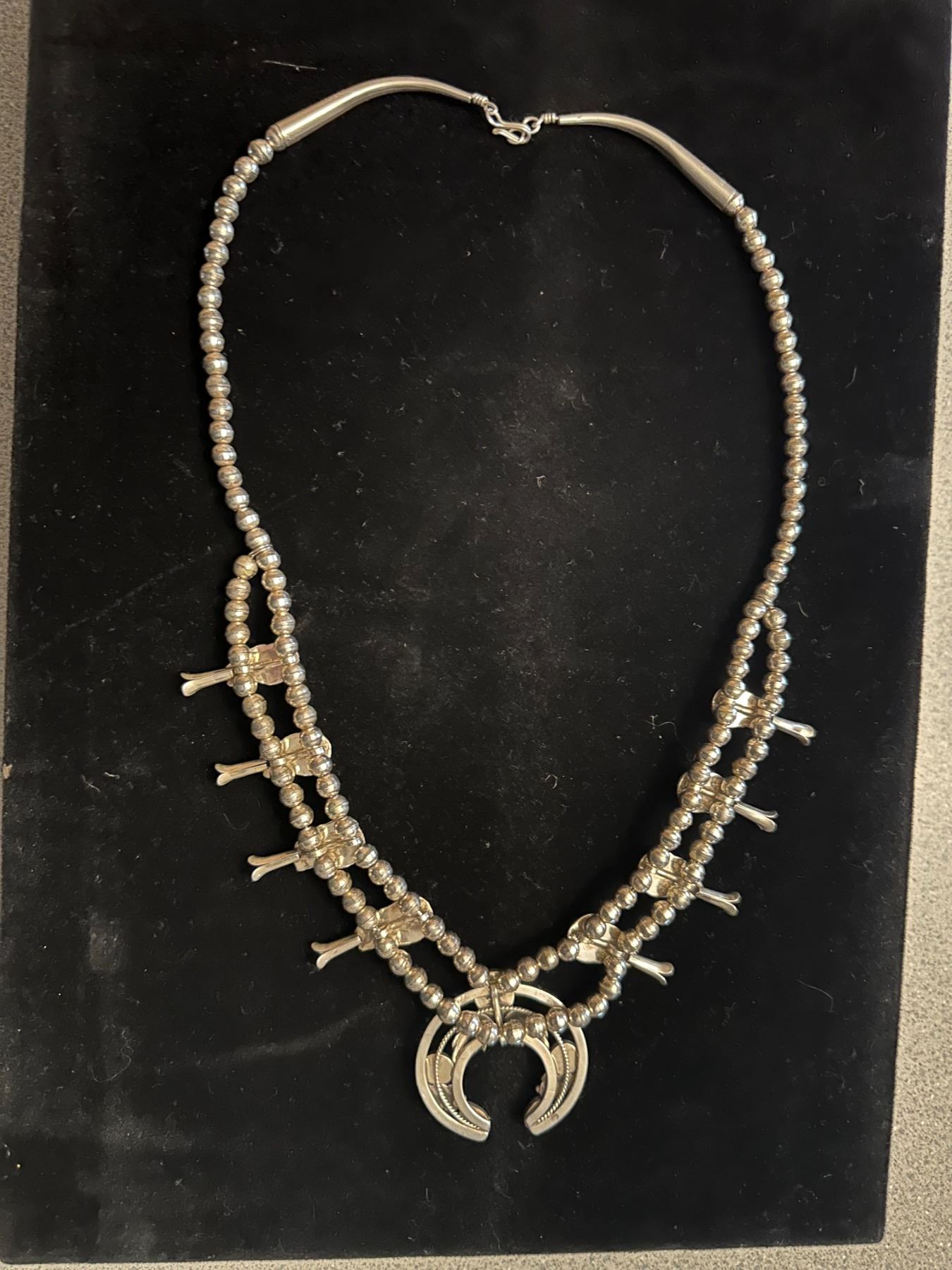 As with many native cultures, wealth was often worn in the form of adornment, and in many early photographs of the Navajo and other Southwestern Native peoples, it is clear that Squash Blossom Necklaces were worn with pride and reverence for their beauty and inherent value.